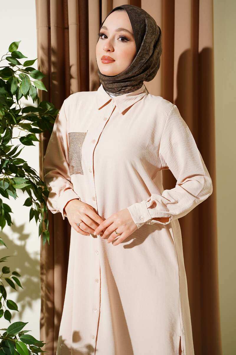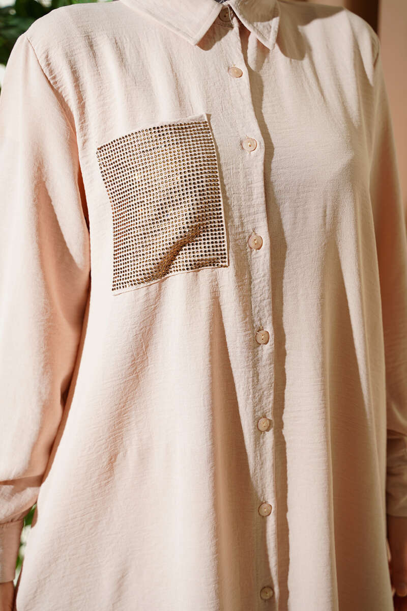 Tek Cepli Mini Taşlı Salaş İkili Takım Bej