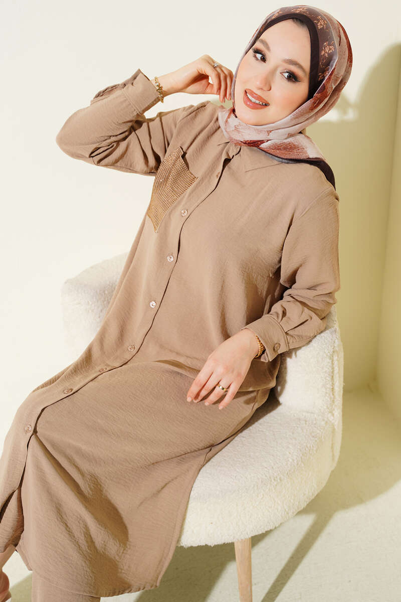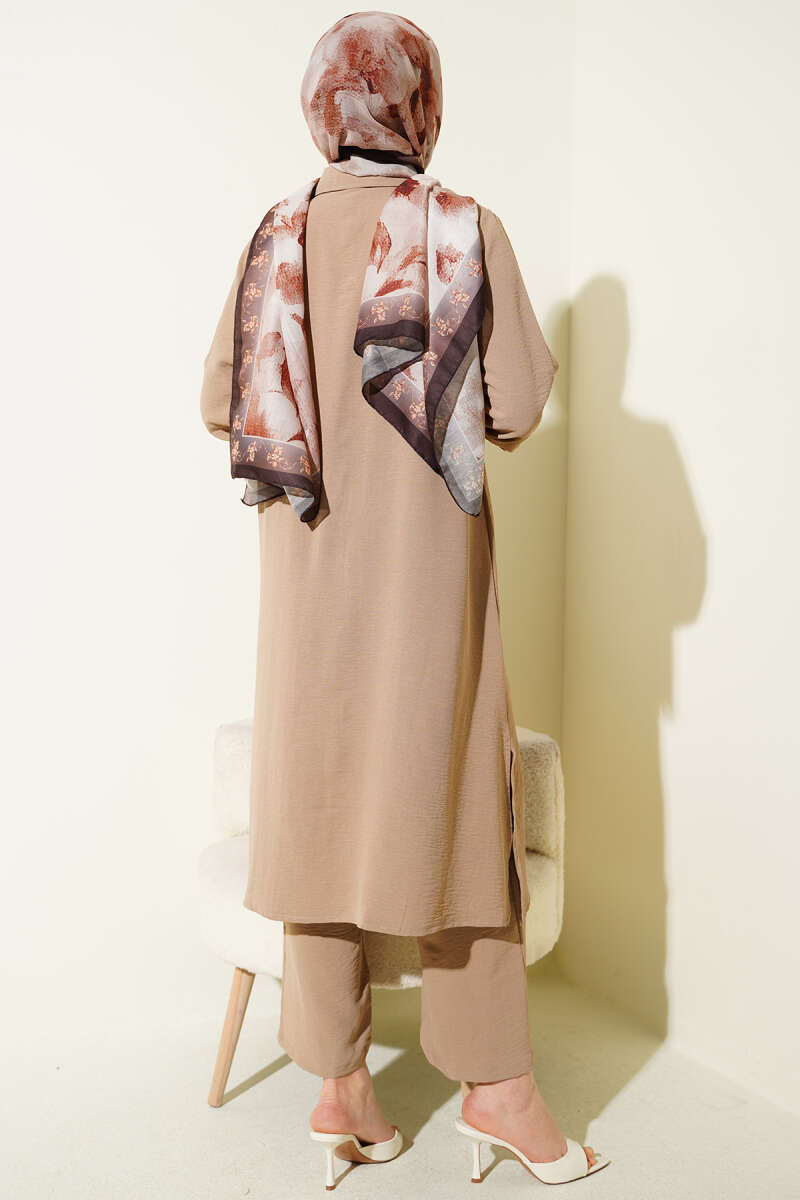 Pilise Detaylı Kruvaze İkili Takım Kahve