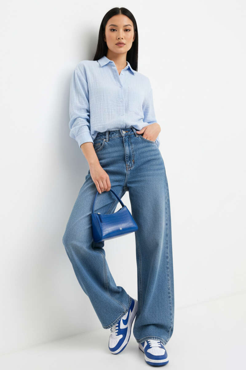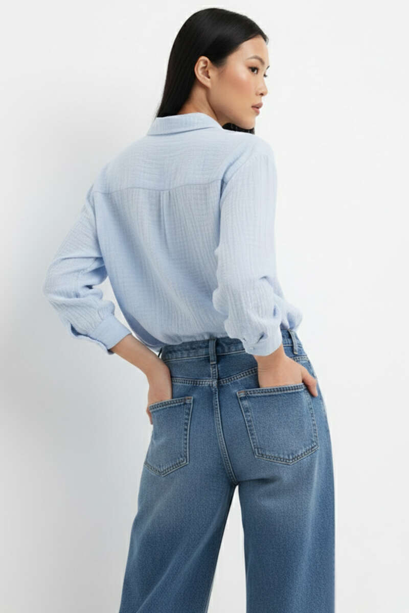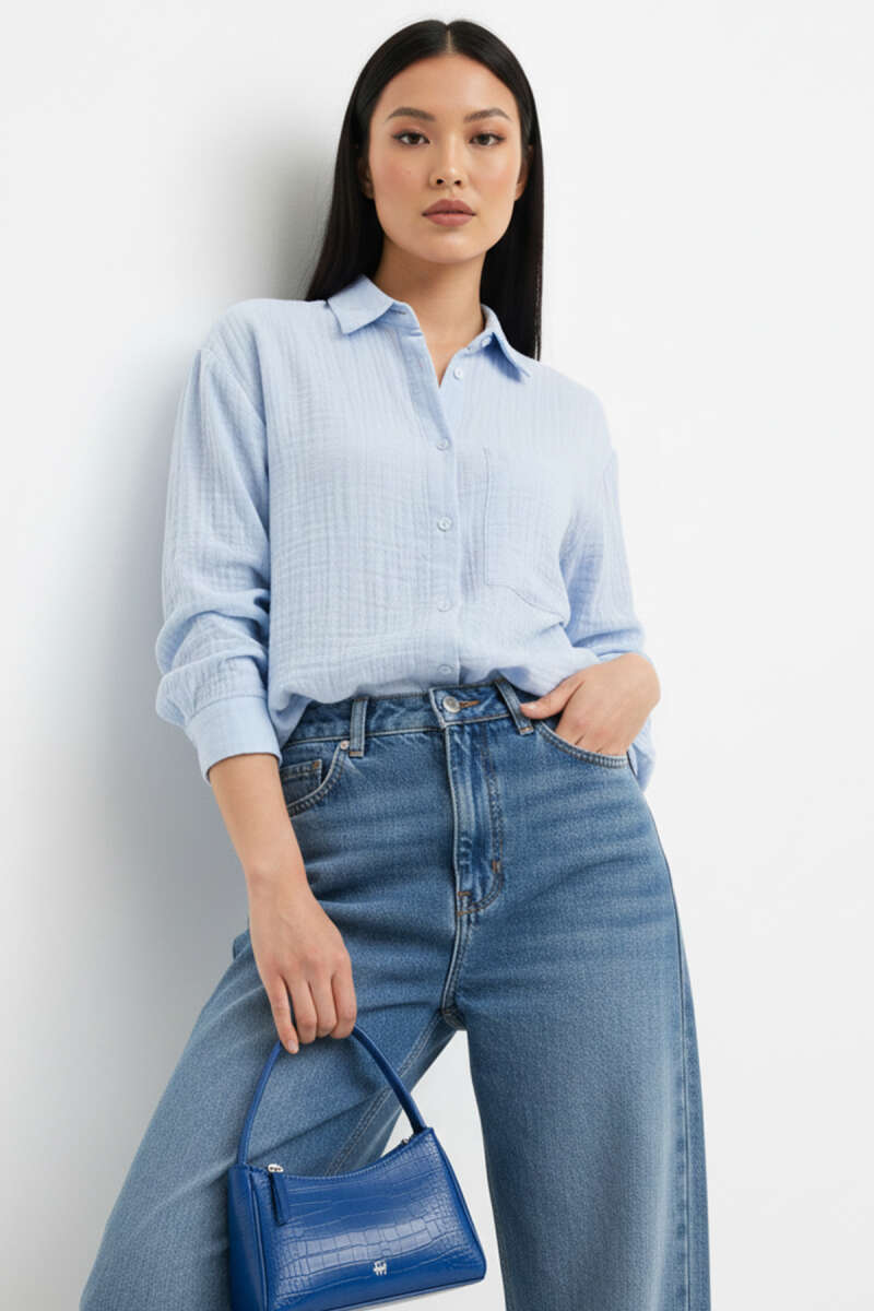 Gömlek Yaka Basic Düğmeli Gömlek Bej