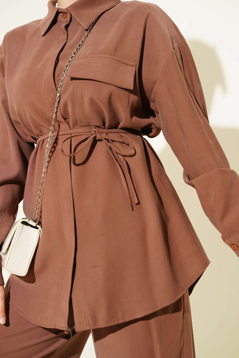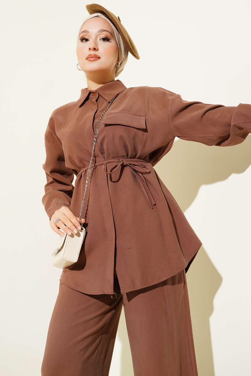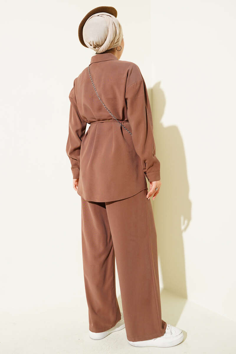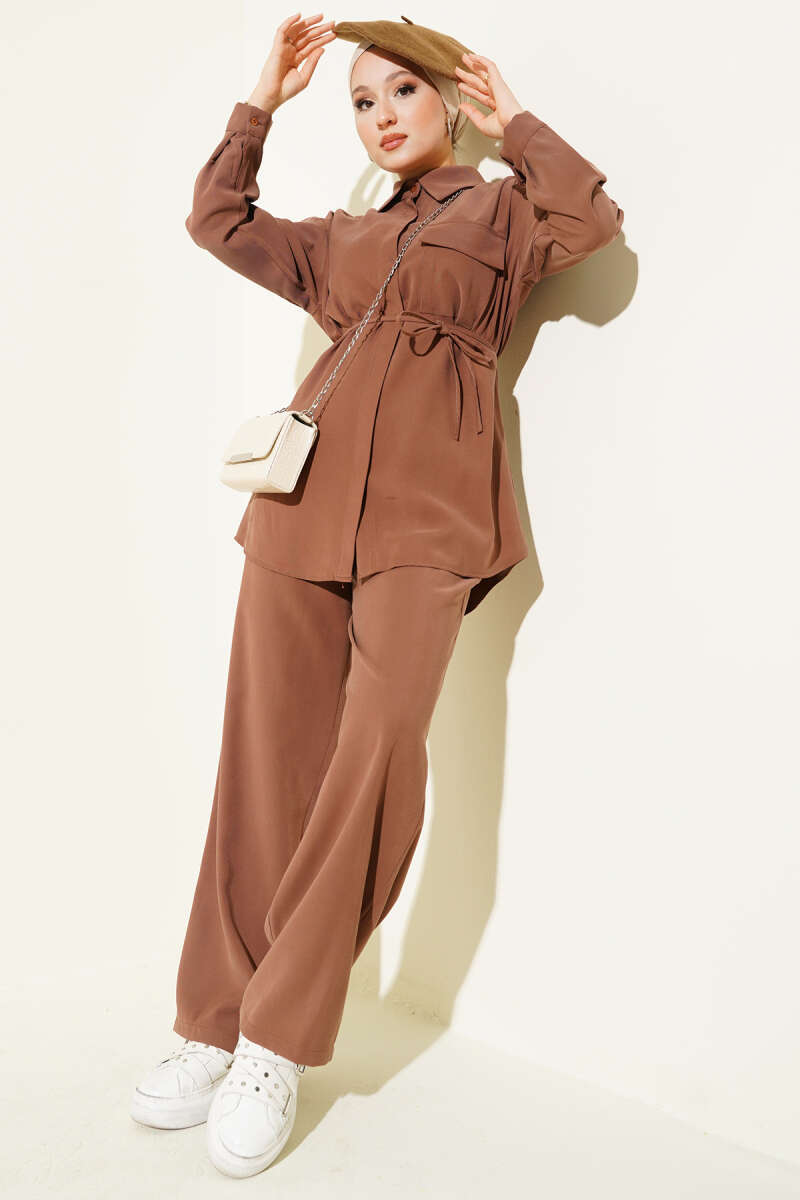 Önü Pileli Kemerli Scuba İkili Takım Haki