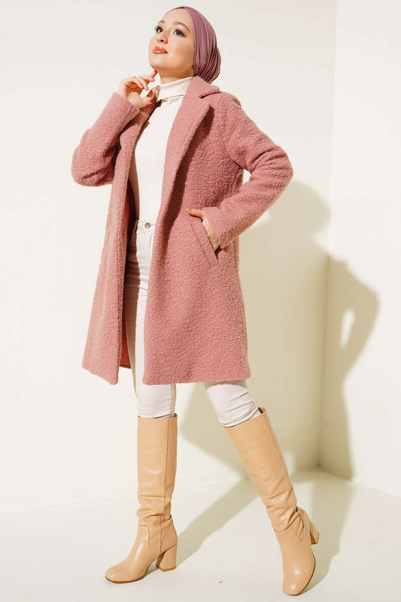 Yeni sezon buklet kabanımız tek düğmelidir. Kruvaze yaka olan kabanımız oversize yapıdadır. İki adet cebi kullanılabilmektedir. İçi astarlı kabanımız renk seçenekleriyle sizi beklemekte.