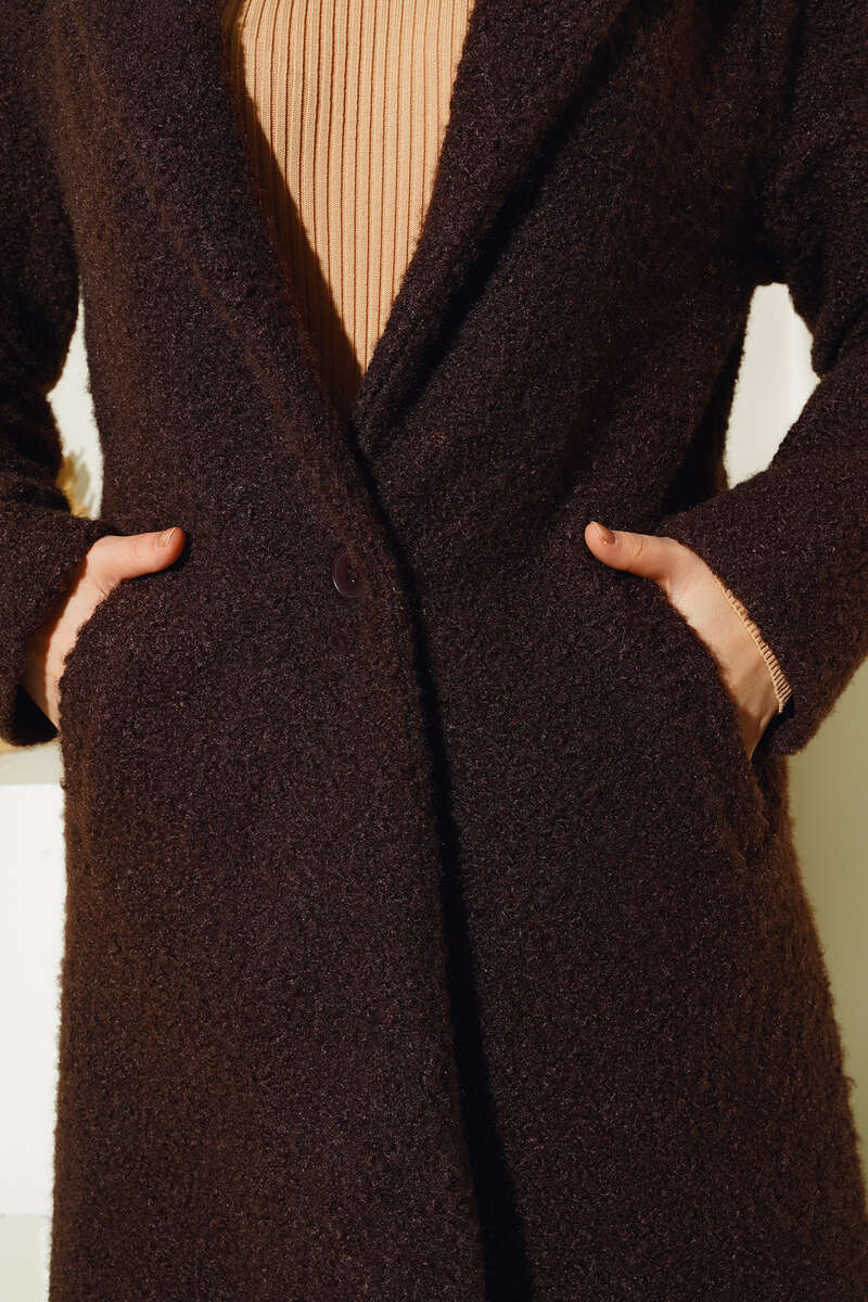 Yeni sezon buklet kabanımız tek düğmelidir. Kruvaze yaka olan kabanımız oversize yapıdadır. İki adet cebi kullanılabilmektedir. İçi astarlı kabanımız renk seçenekleriyle sizi beklemekte.