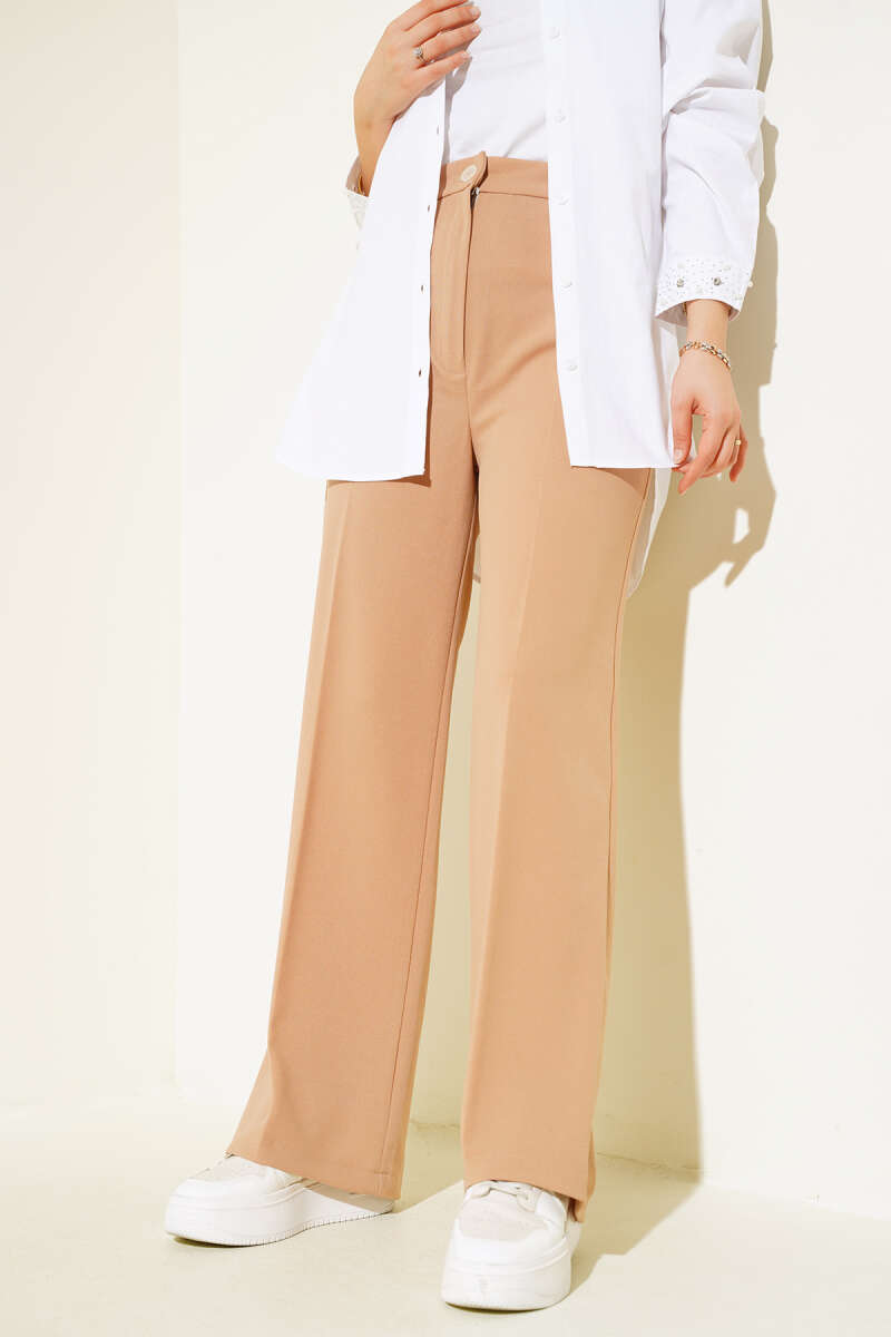 Tek Düğmeli Çift Pileli Pantolon Latte