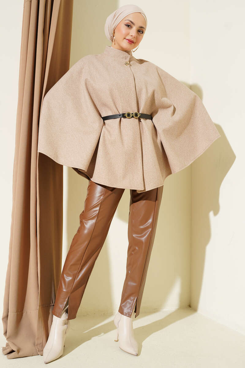 Hakim Yaka Kuşaklı Kaşe Panço Camel