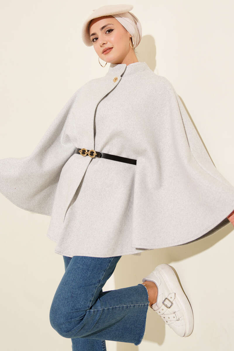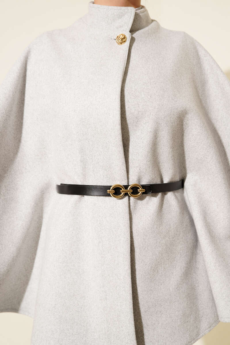 Gold Düğmeli Kaşe Panço Melanj Gri