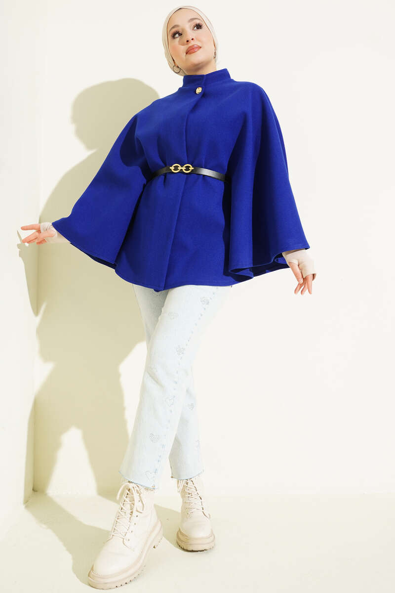 Hakim Yaka Kuşaklı Kaşe Panço Camel