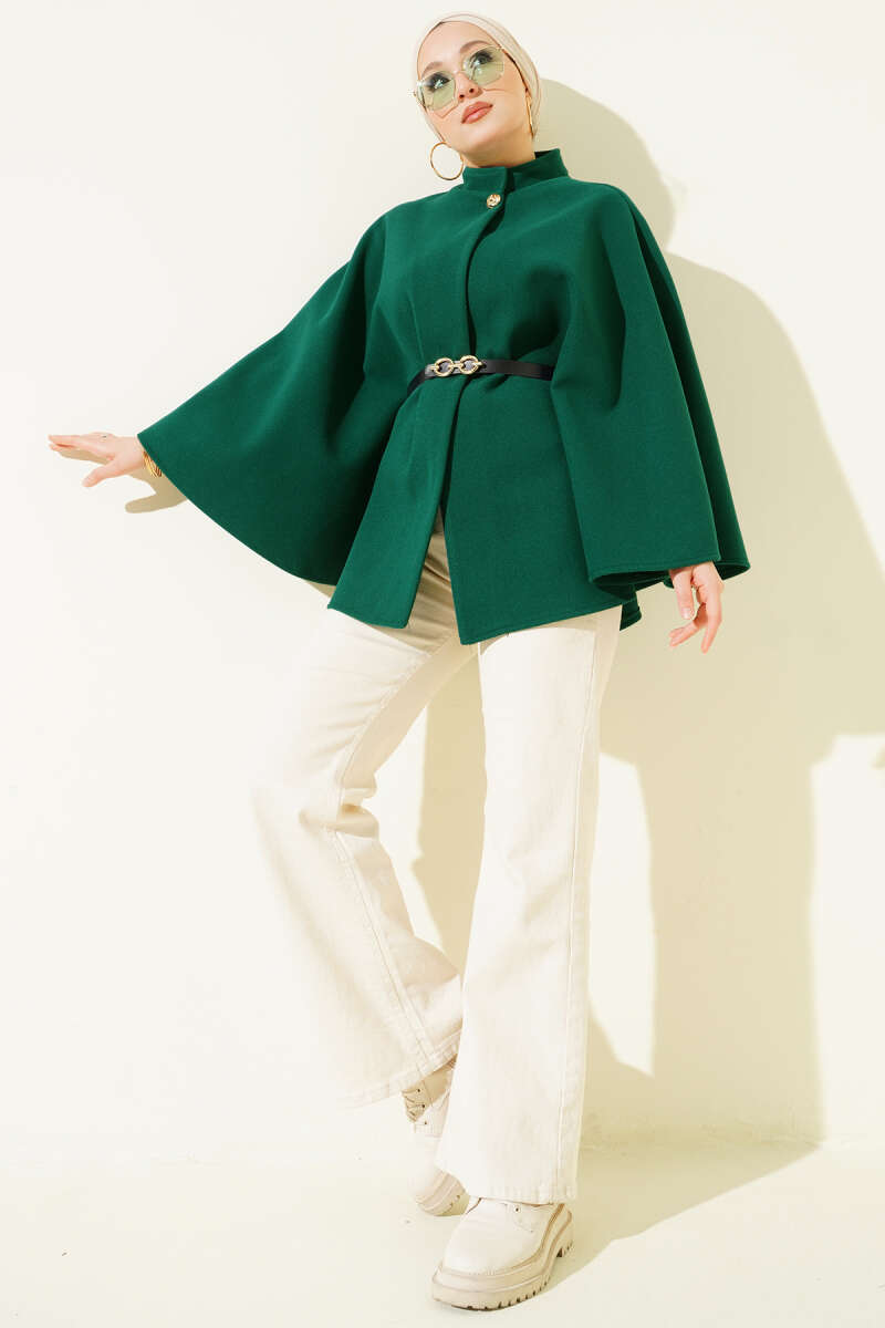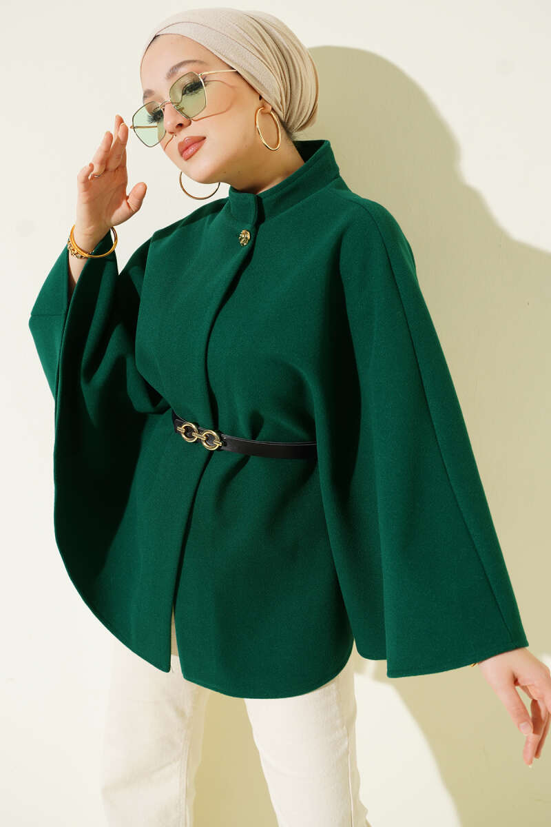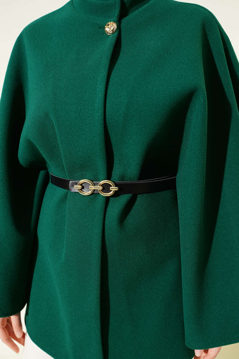 Hakim Yaka Kuşaklı Kaşe Panço Camel