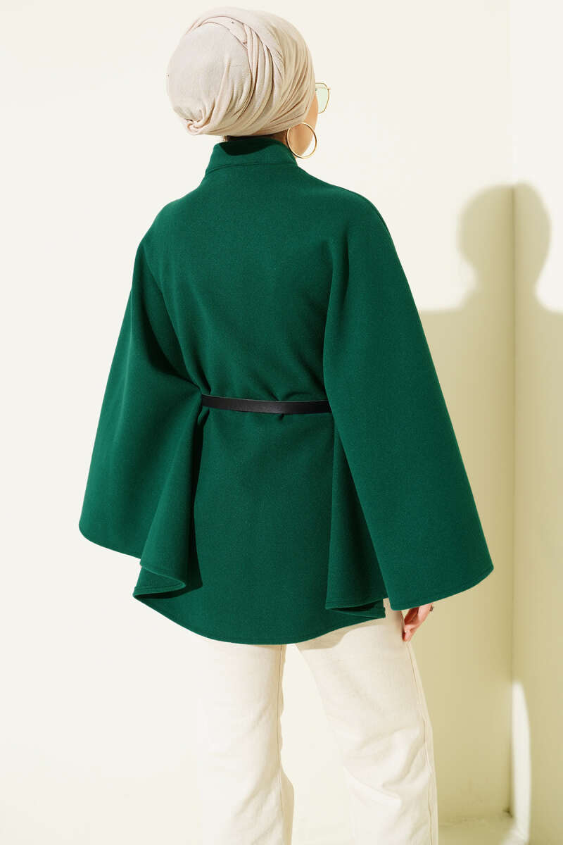 Hakim Yaka Kuşaklı Kaşe Panço Kahve