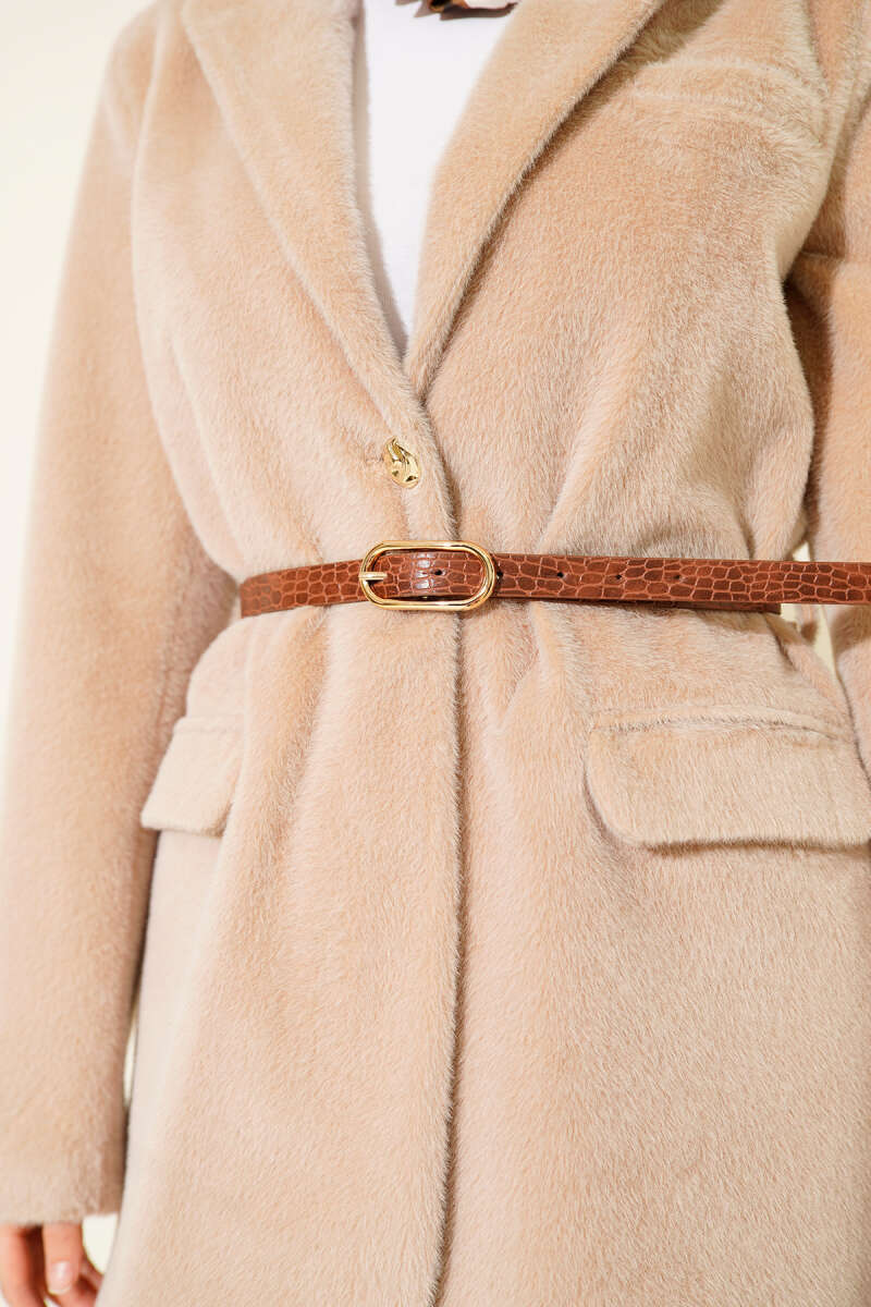 Tek Düğmeli Kemerli Sakallı Ceket Bej