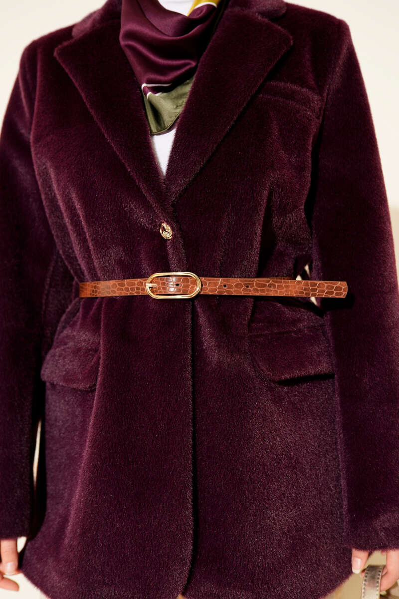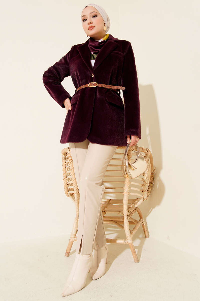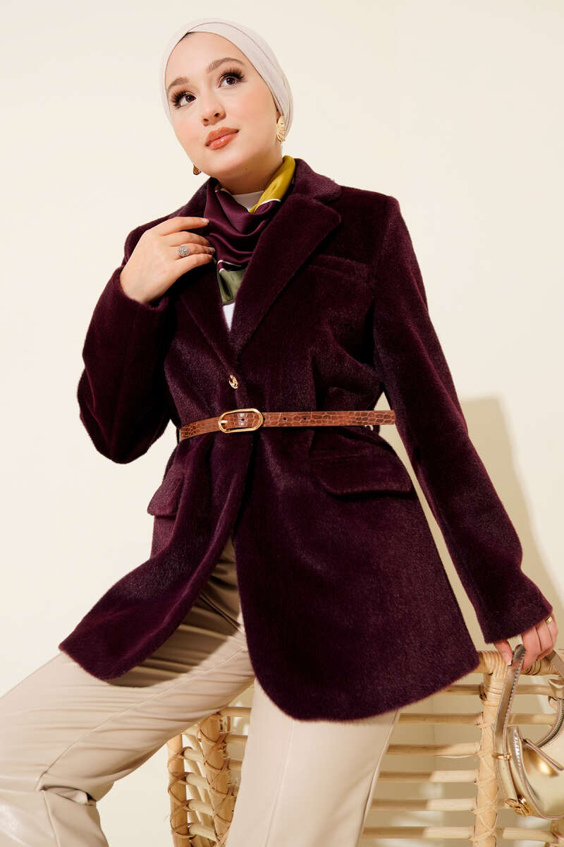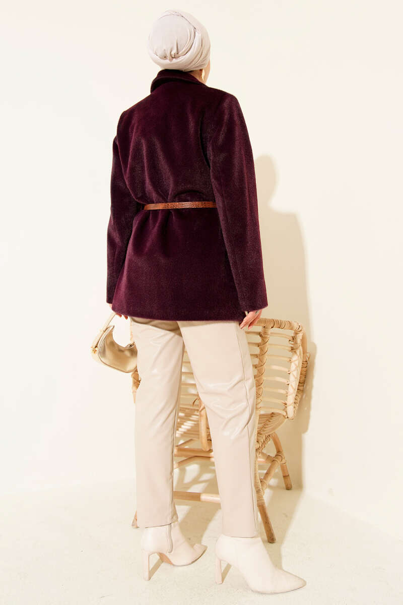 Çıtçıt Düğmeli Gömlek Yaka Kaşe Ceket Mor