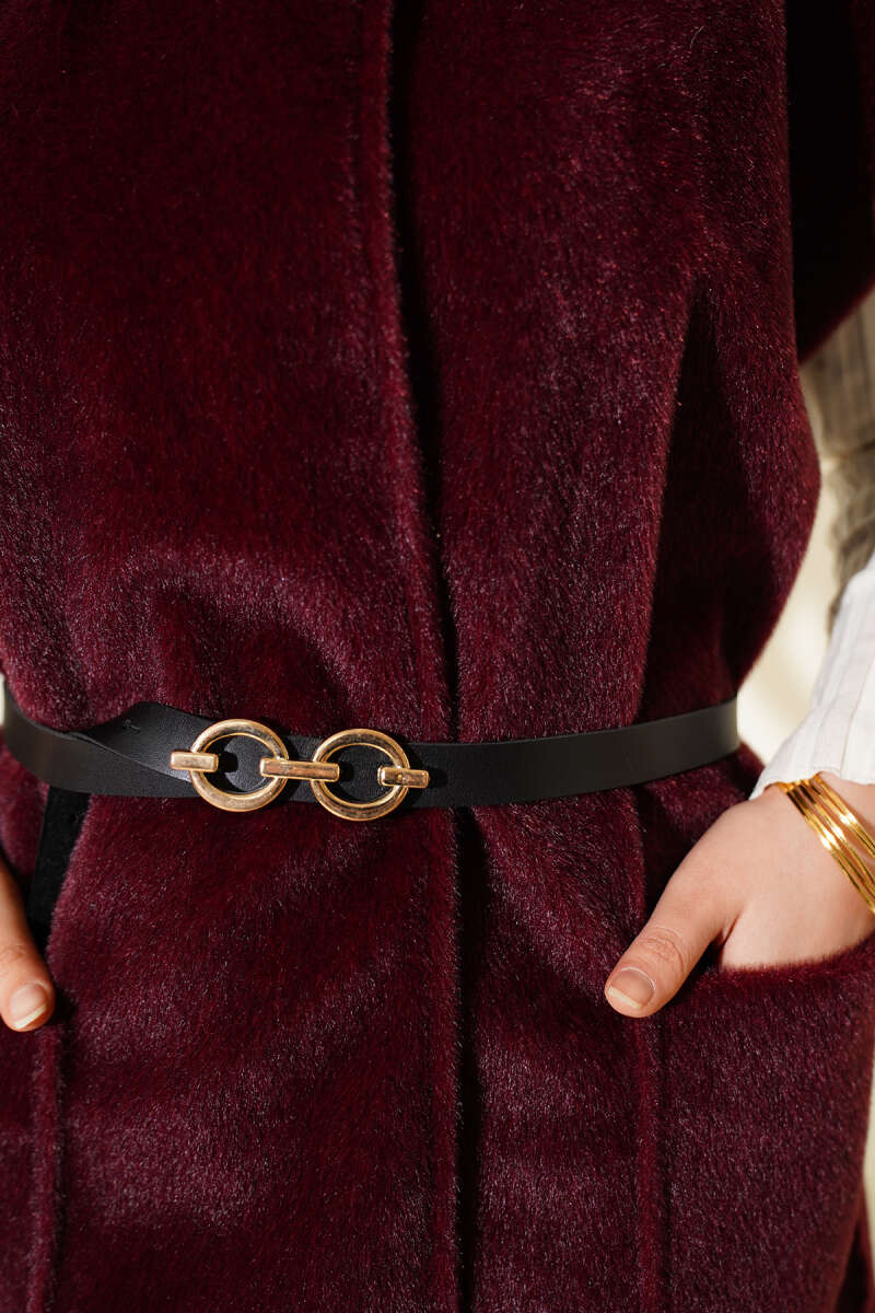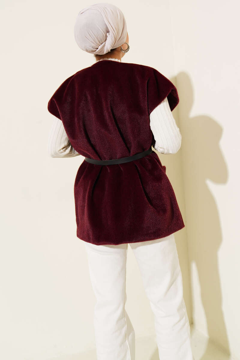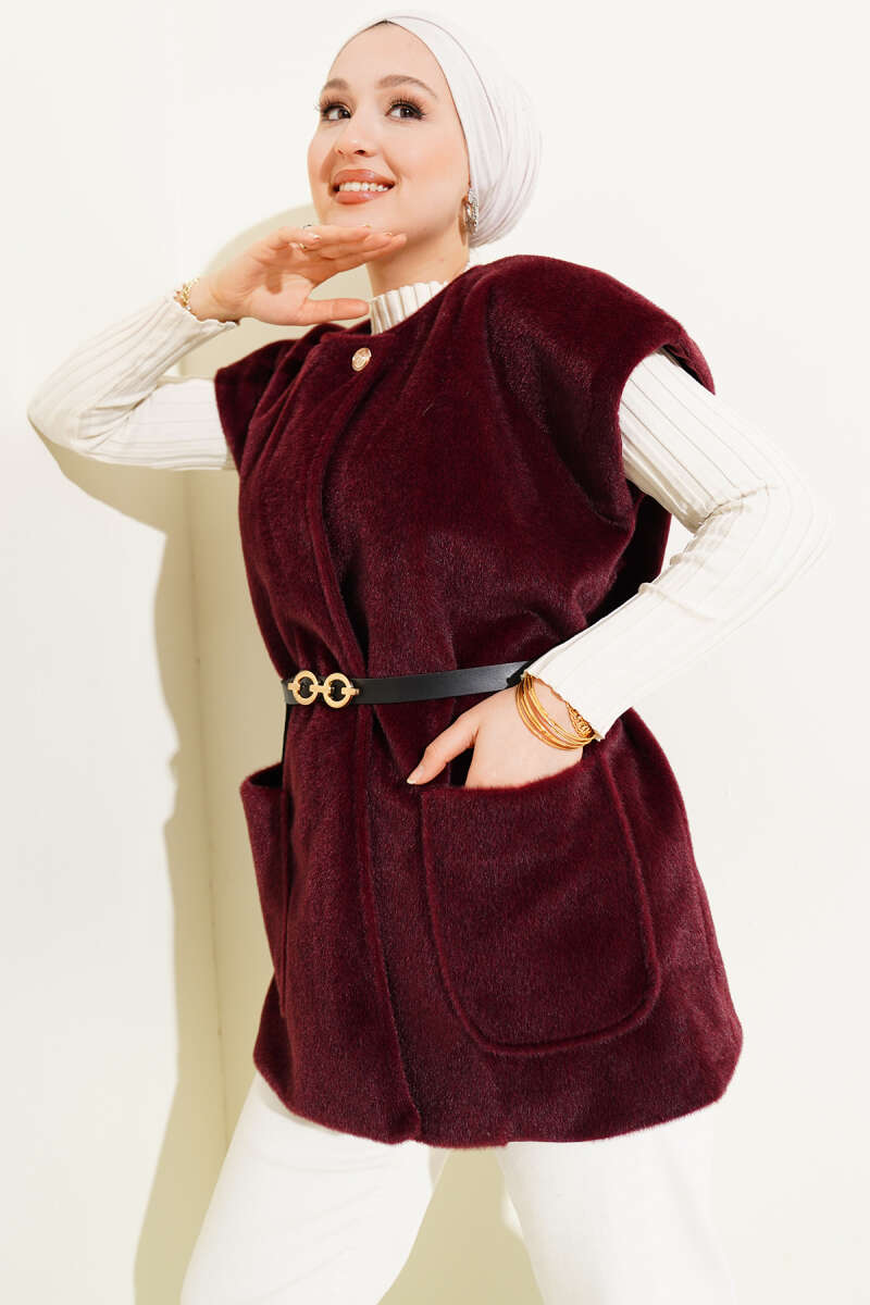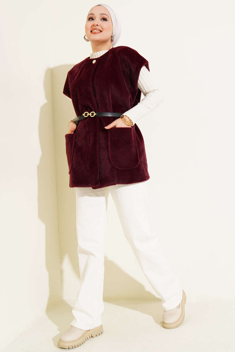 Fırfır Detaylı Düğmeli Triko Yelek Bordo