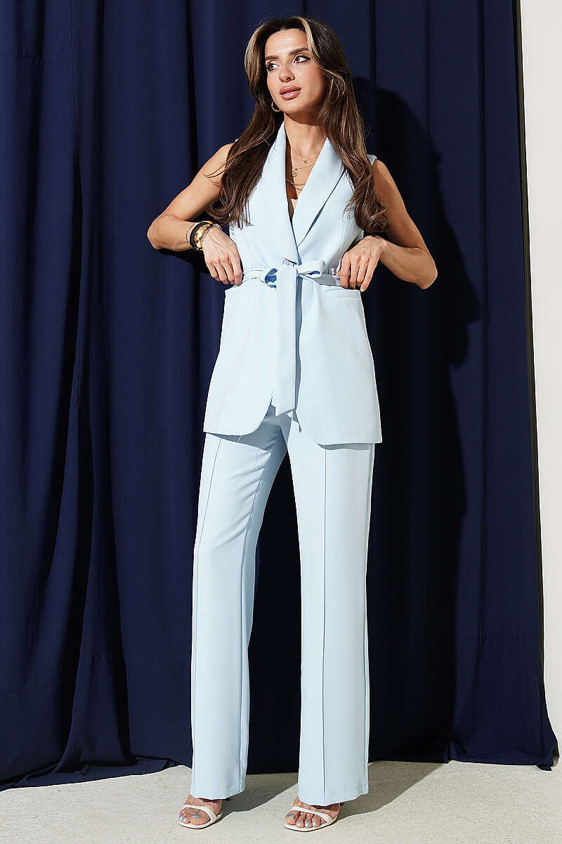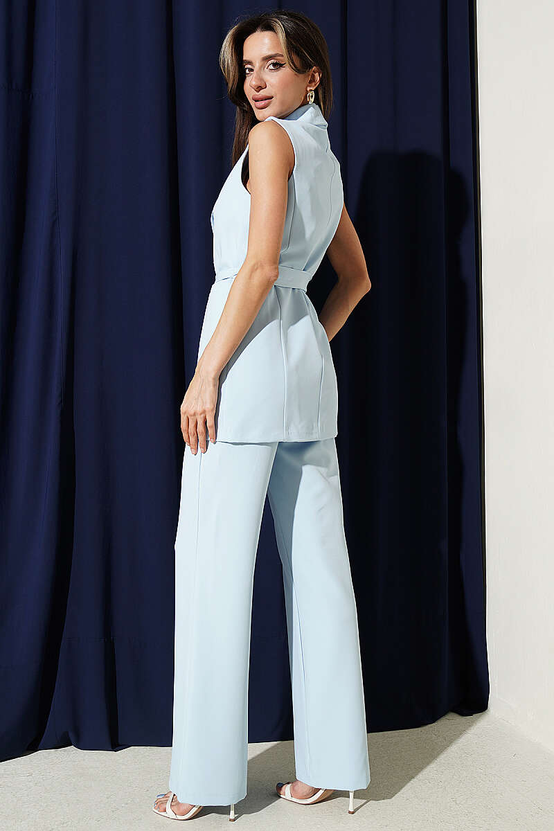 Tek Düğmeli Uzun Yelekli İkili Takım Bebe Mavi