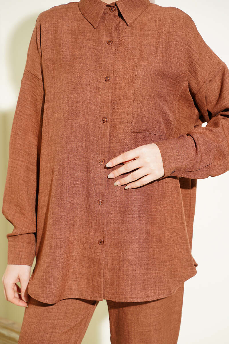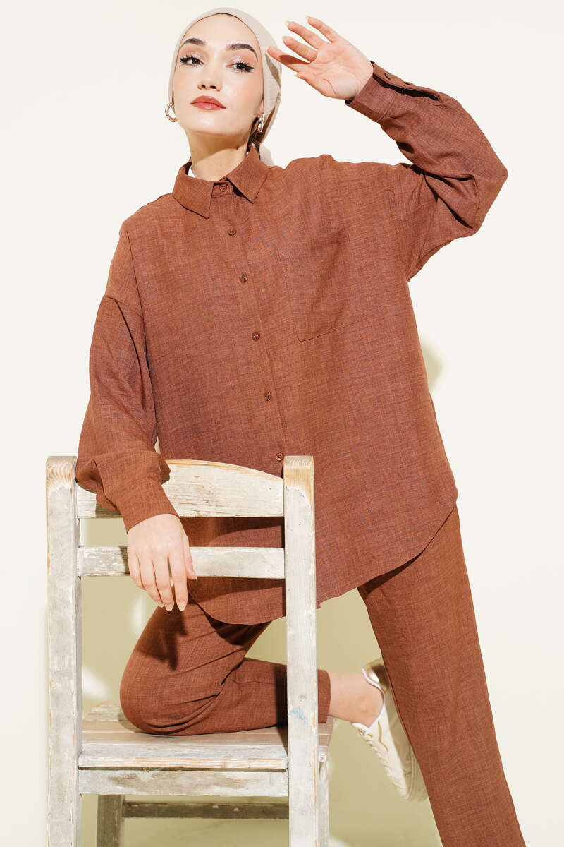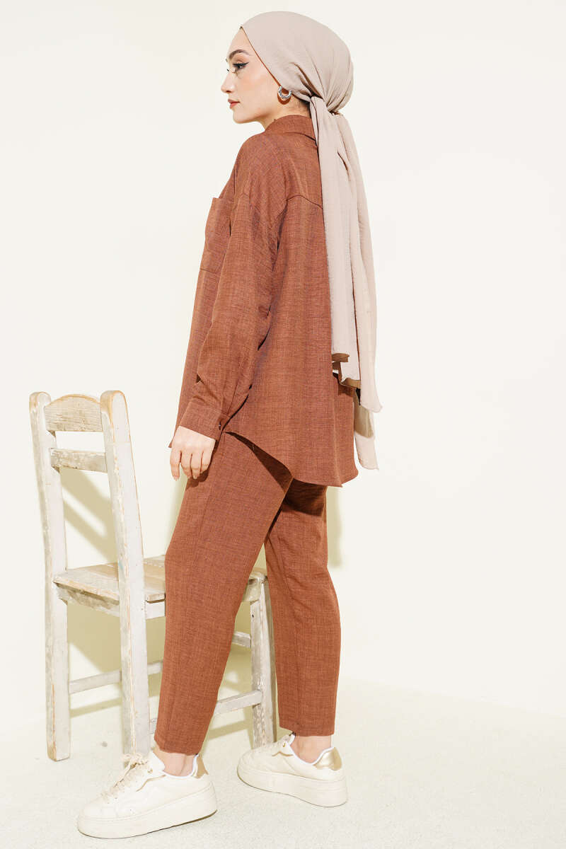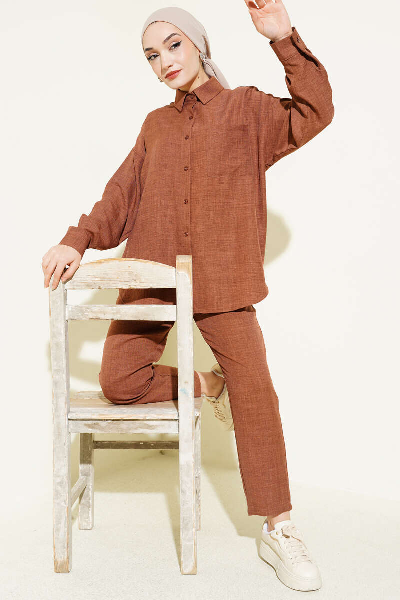 Tek Göğüs Cepli Gömlekli İkili Takım Kahve