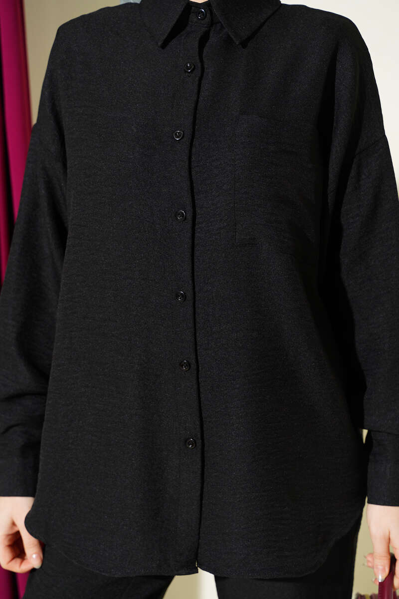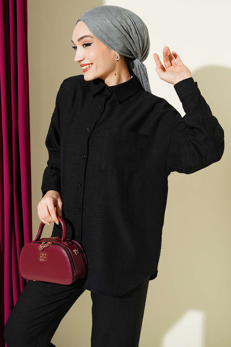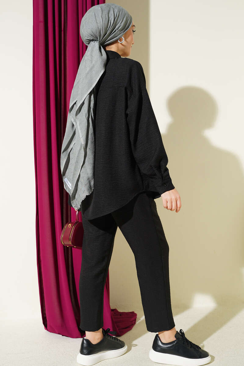 Tek Göğüs Cepli Gömlekli İkili Takım Siyah