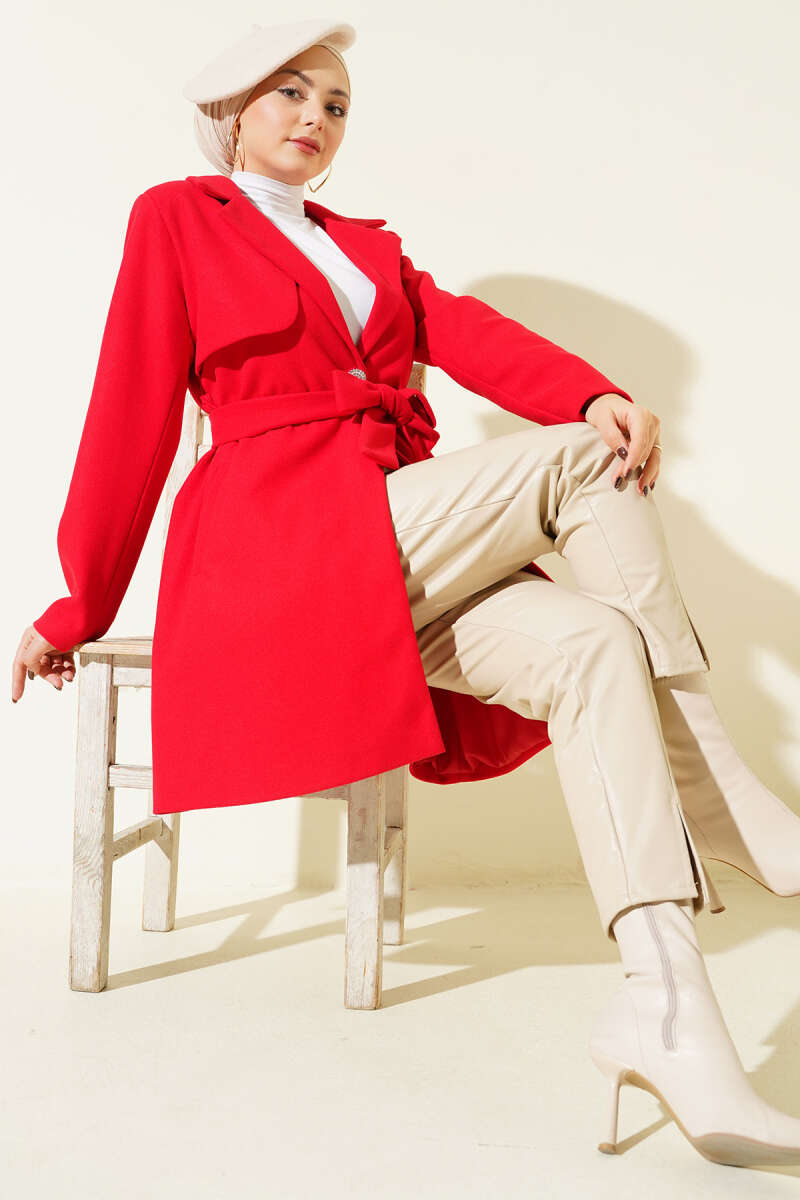 Kuşaklı Gold Düğmeli Kaşe Kaban Taş