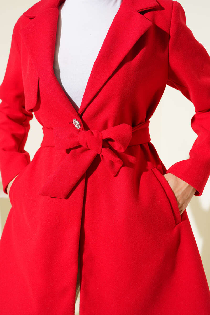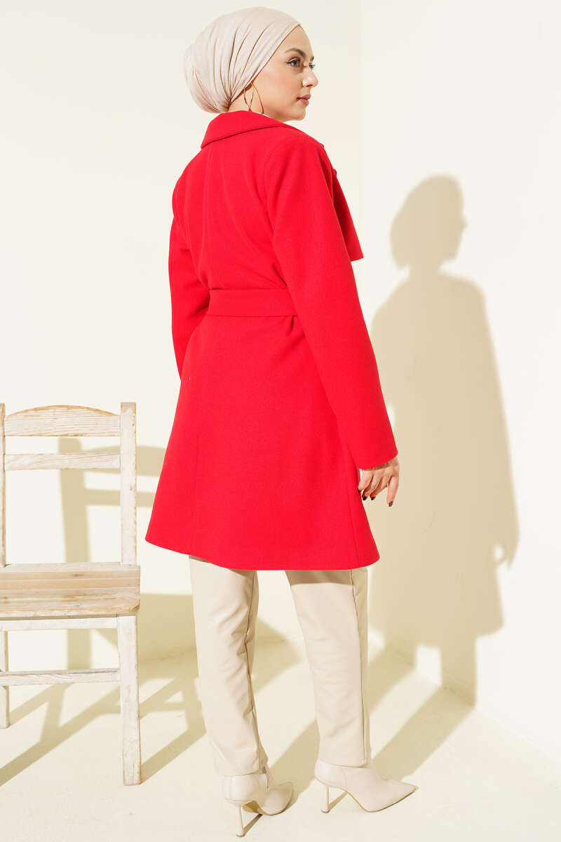 Kruvaze Yaka Uzun Kaşe Kaban Bordo