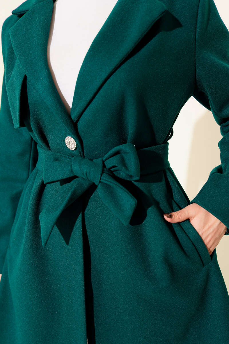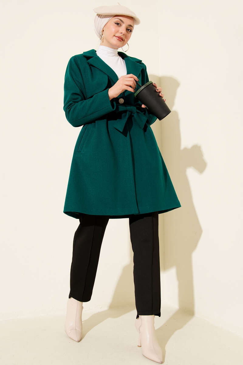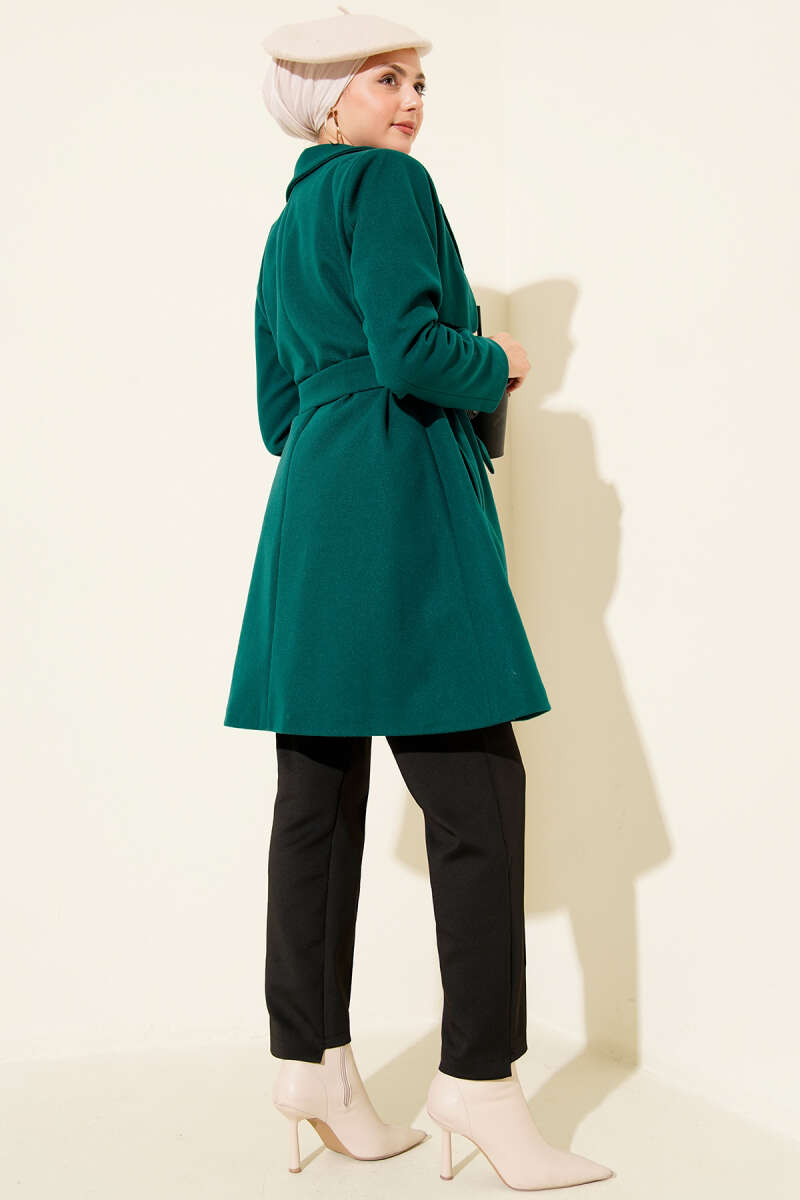 Tek Omuz Apoletli Düğme Detaylı Kaşe Kaban Zümrüt