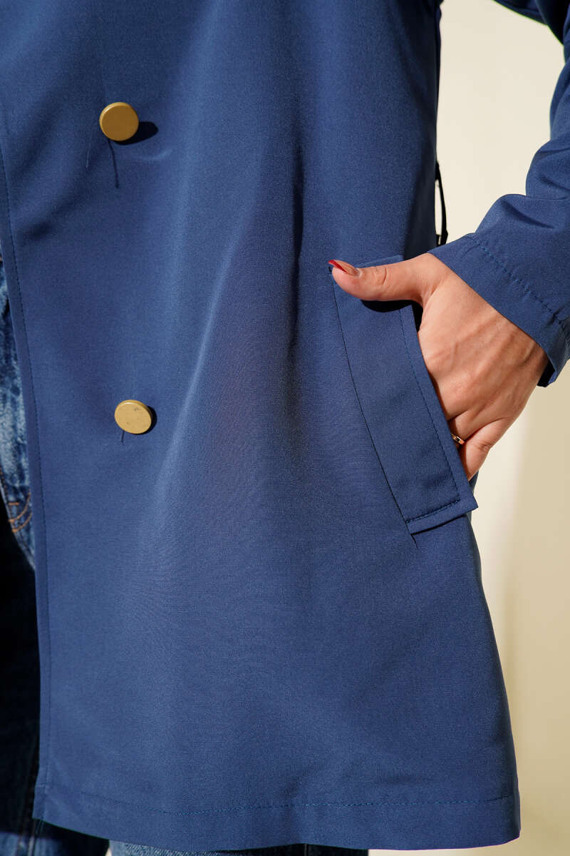 Omuz Apoletli Düğme Detaylı Trençkot İndigo