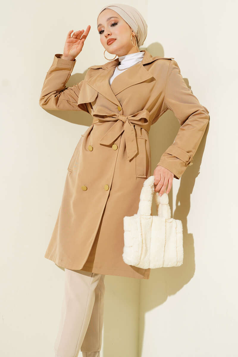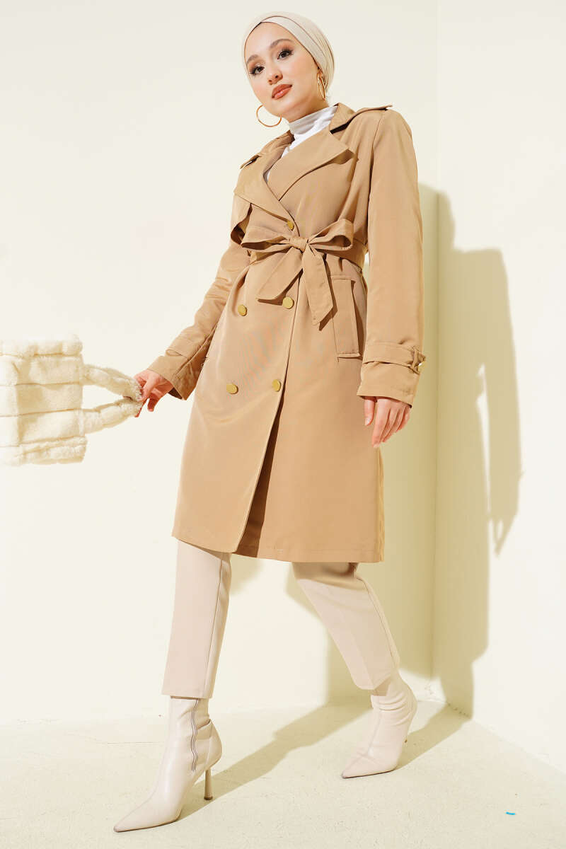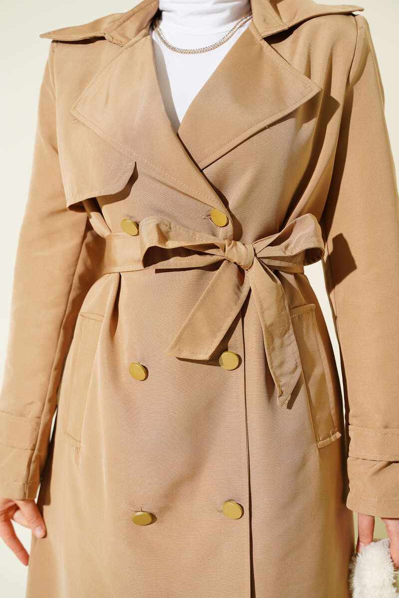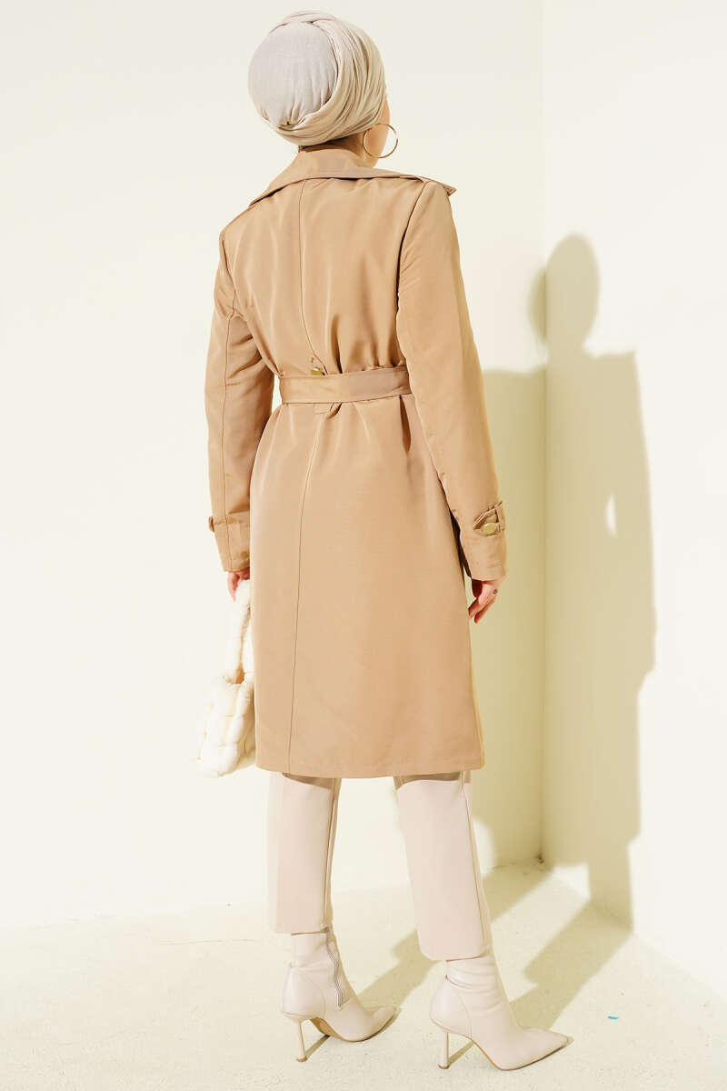 Tek Omuz Apoletli Düğmeli Trençkot Camel