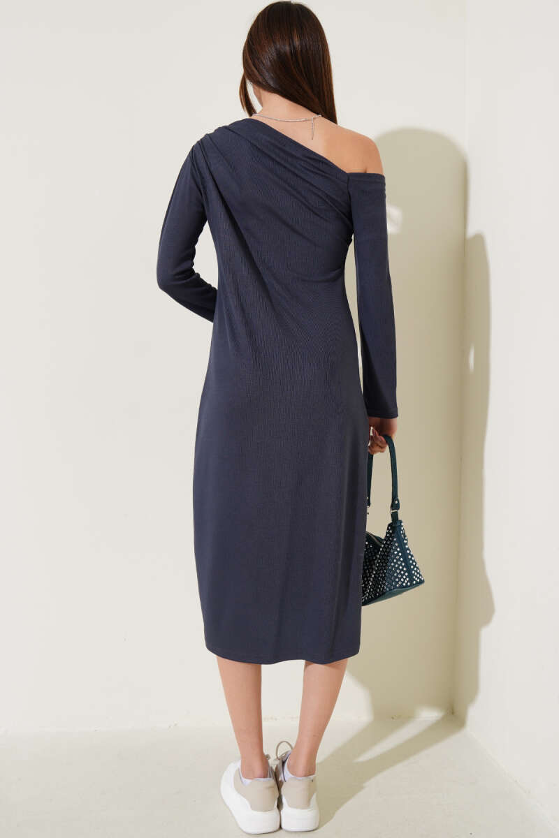 Tek Omuz Basic Elbise Füme