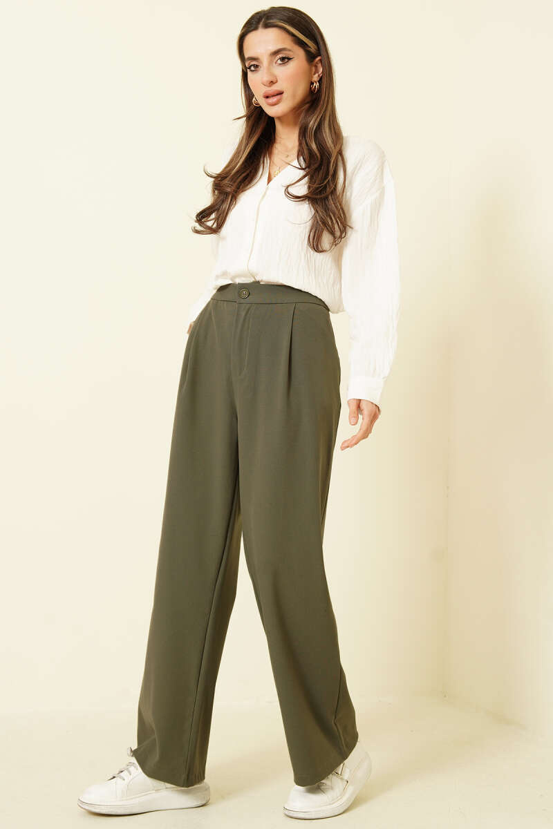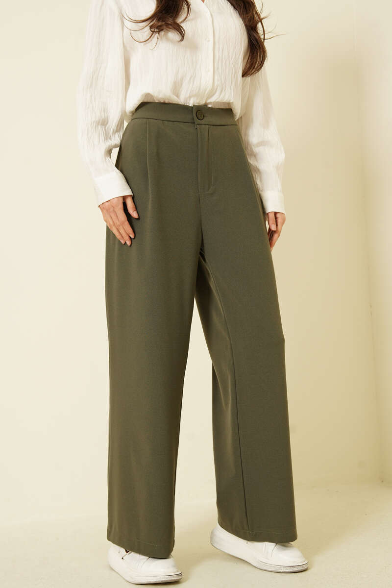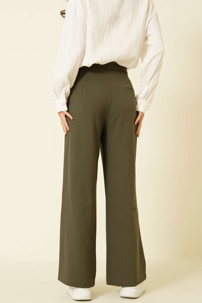 İspanyol Paça Bel Lastikli Dabıl Pantolon Füme