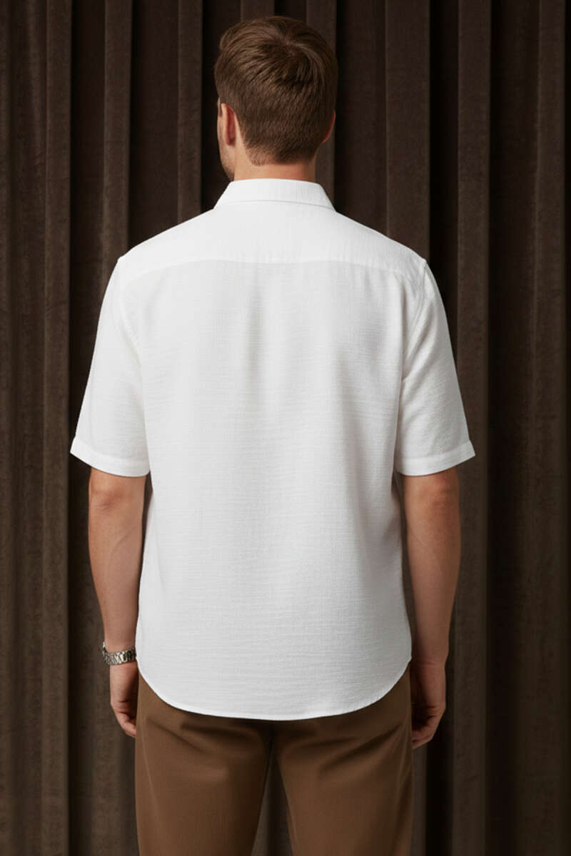 Tensel Kısa Kollu Erkek Gömlek Beyaz