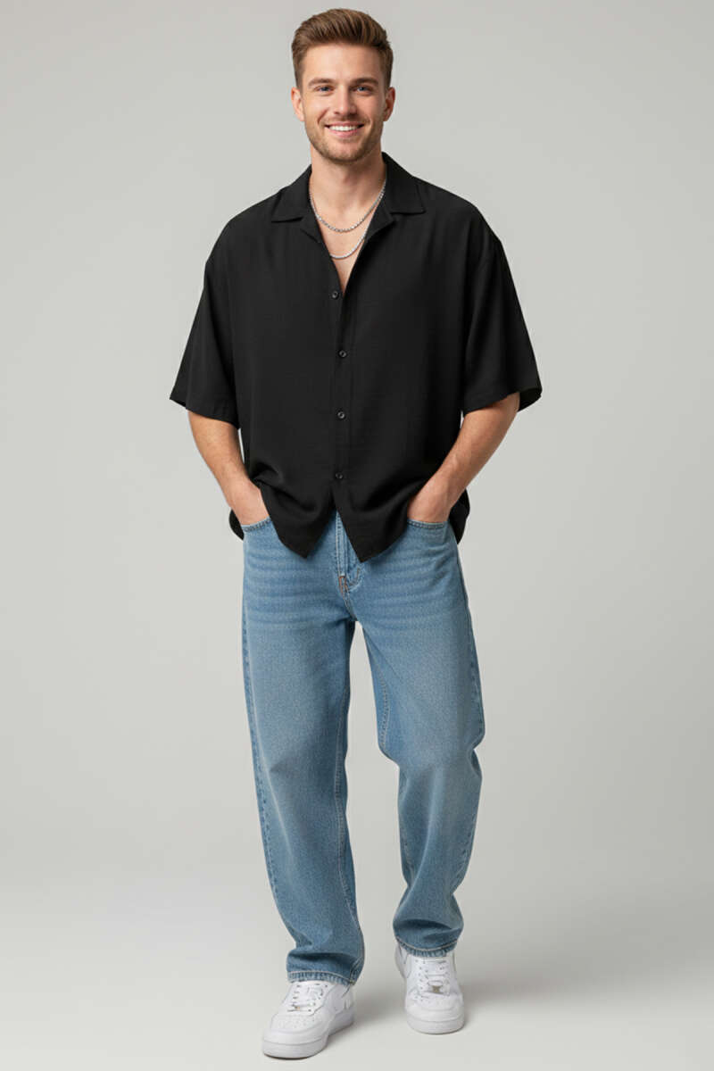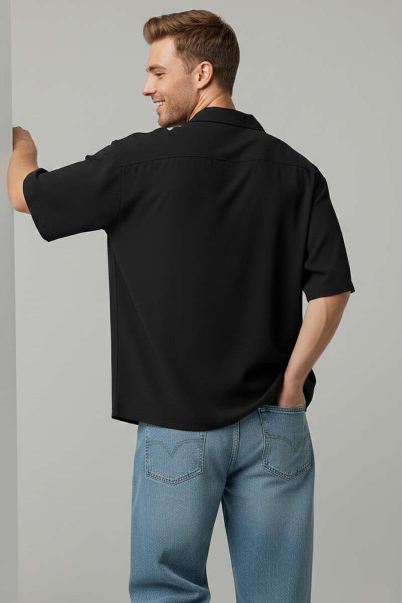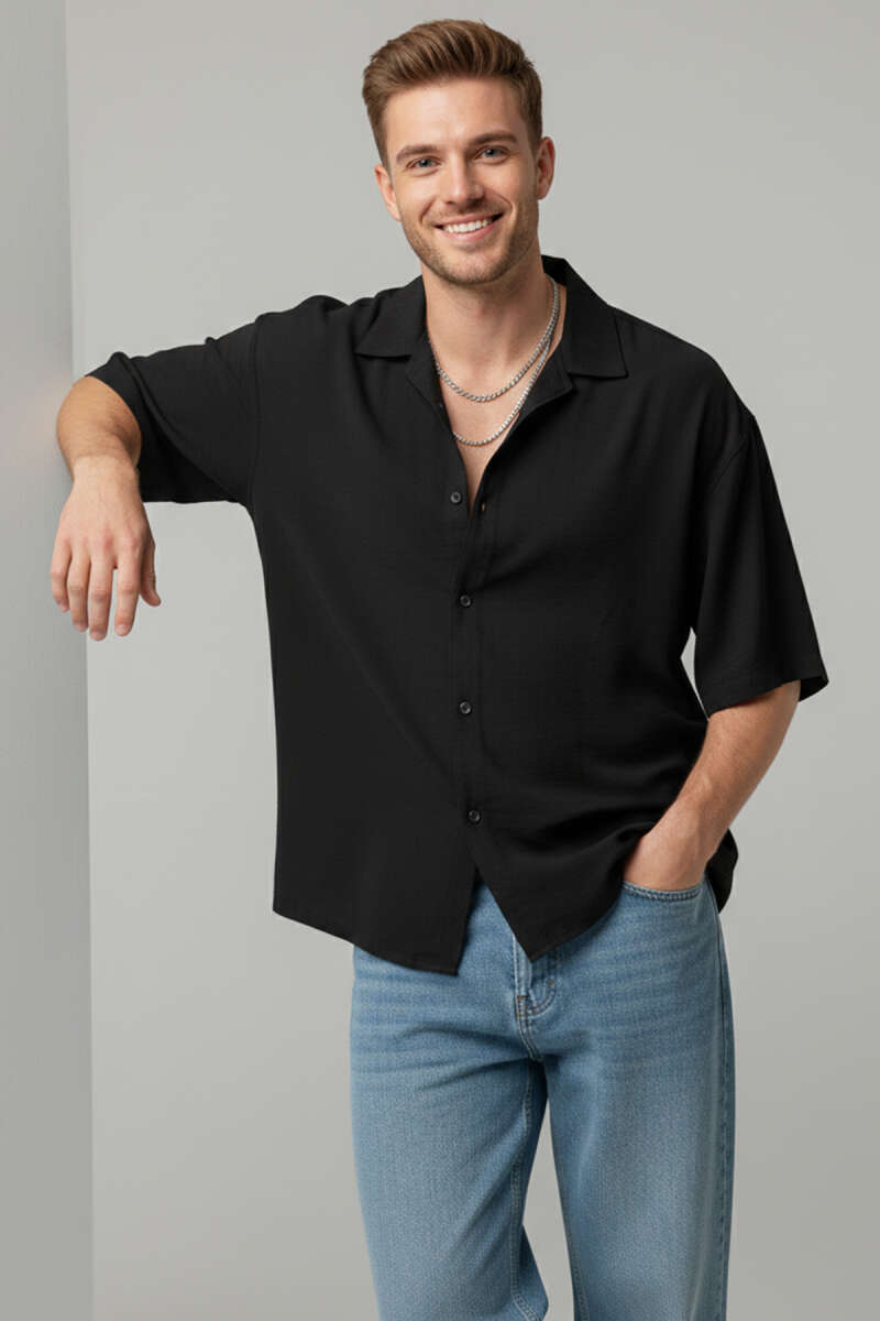 Tensel Kısa Kollu Erkek Gömlek Siyah