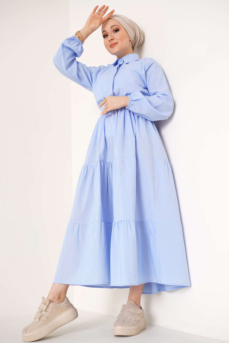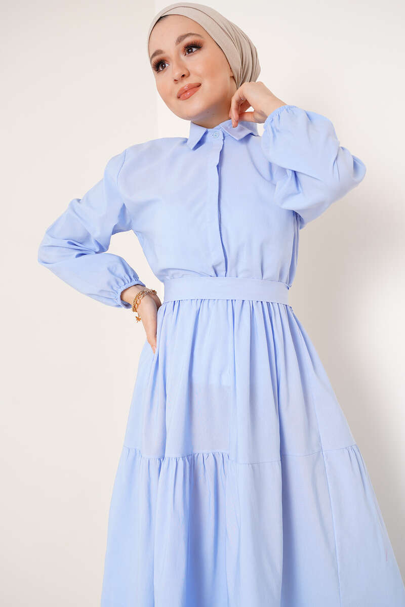Yeni sezon model elbisemiz harika tasarımıyla sizler için geldi. Elbisemiz gizli patlıdır. Kuşağı ve iki adet kemer köprüsü bulunmaktadır. Beli lastiklidir. Kat kat modeldir. Terikotondur. Gömlek yakadır. Bilekleri lastiklidir. Her ortamda rahatlıkla giyebilirsiniz. Farklı renk seçenekleri mevcuttur.