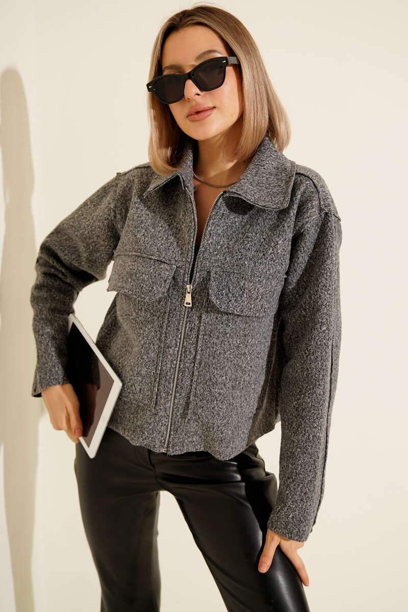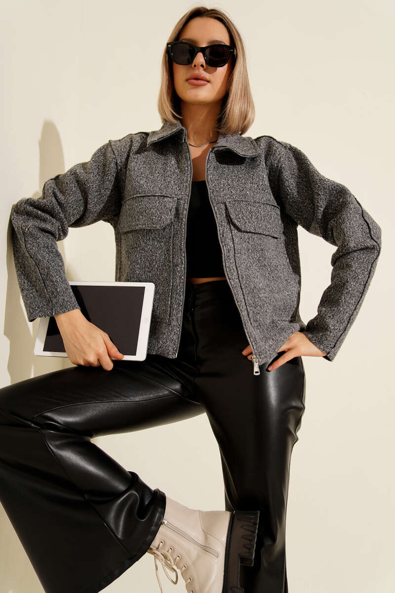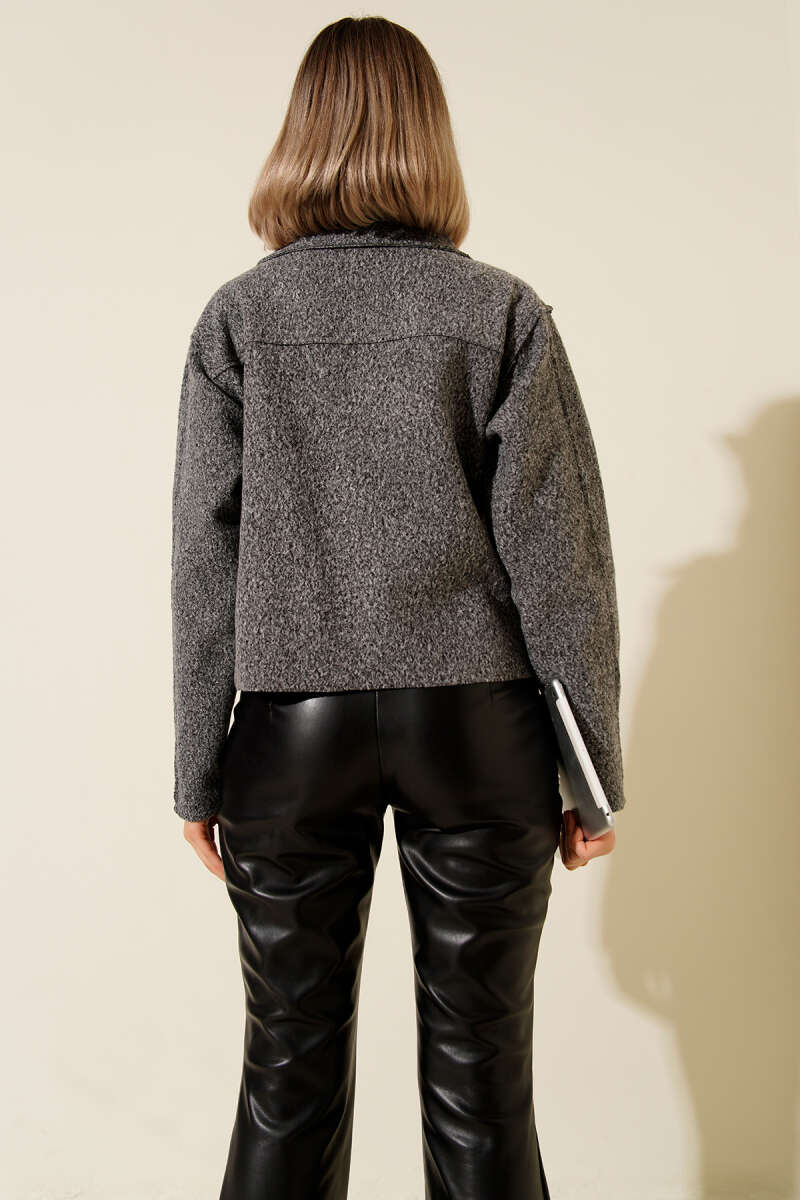 Çıtçıt Düğmeli Gömlek Yaka Kaşe Ceket Su Yeşili