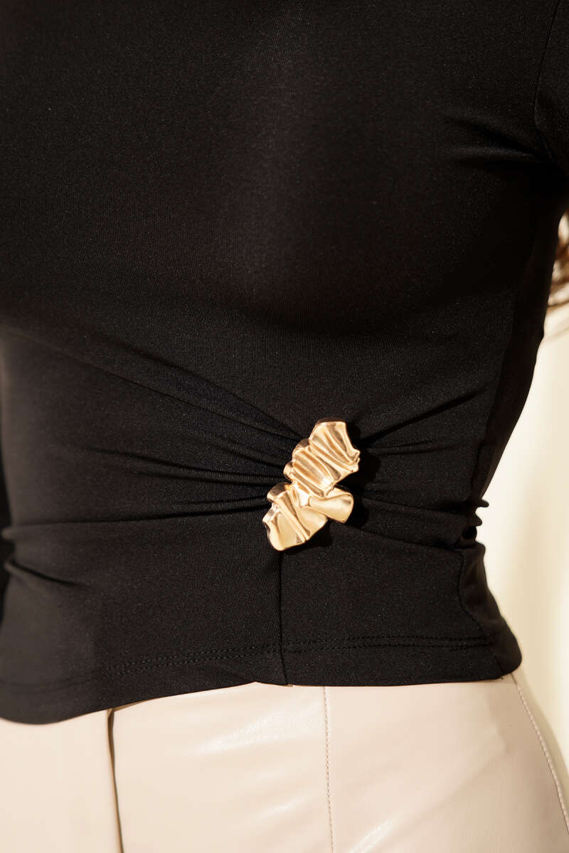 Gold Düğmeli Kolsuz Etekli Triko Takım Siyah