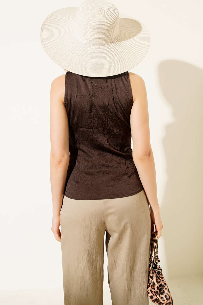 Tokalı Bağlamalı Bluz Kahve