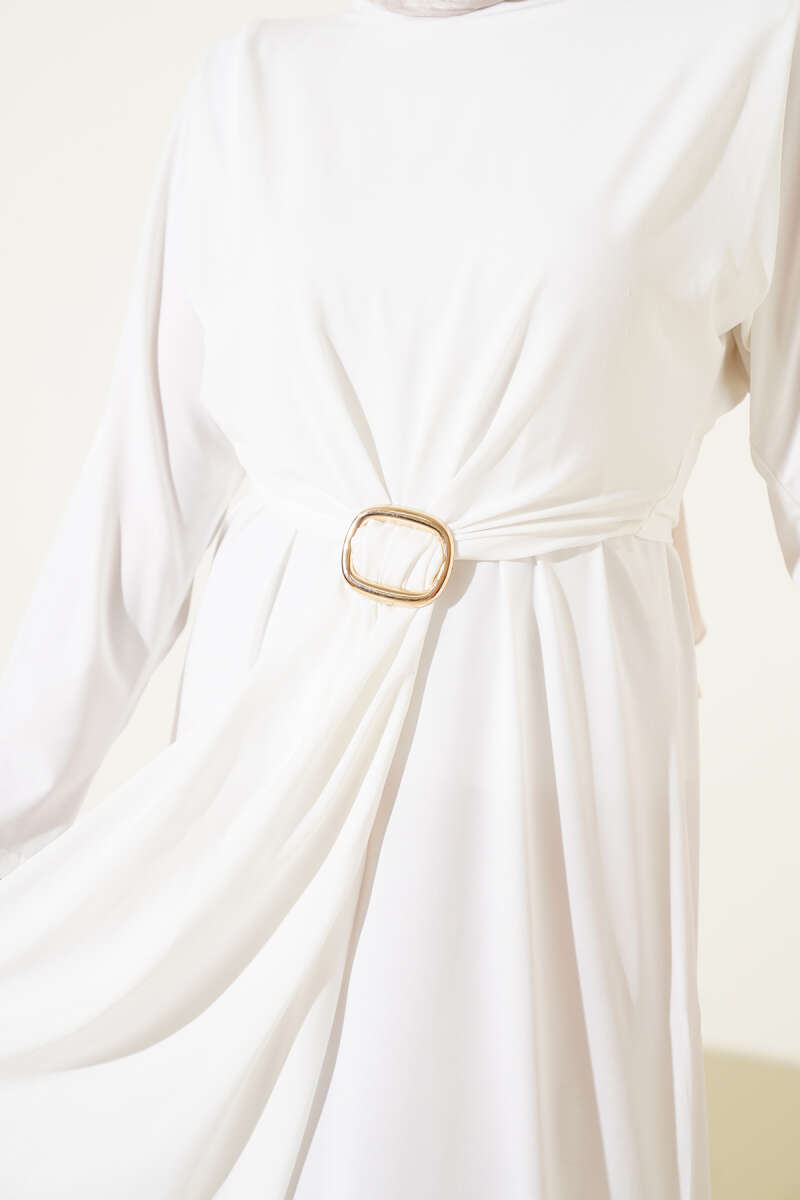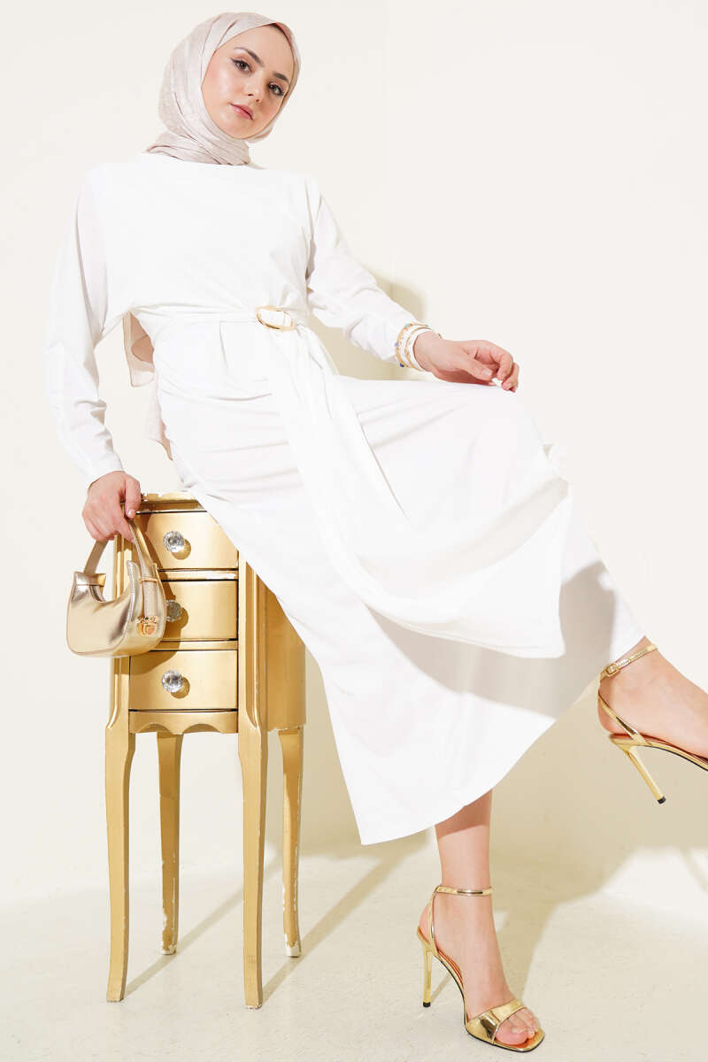 Bel Lastikli Kuşaklı Ayrobin Elbise Mor