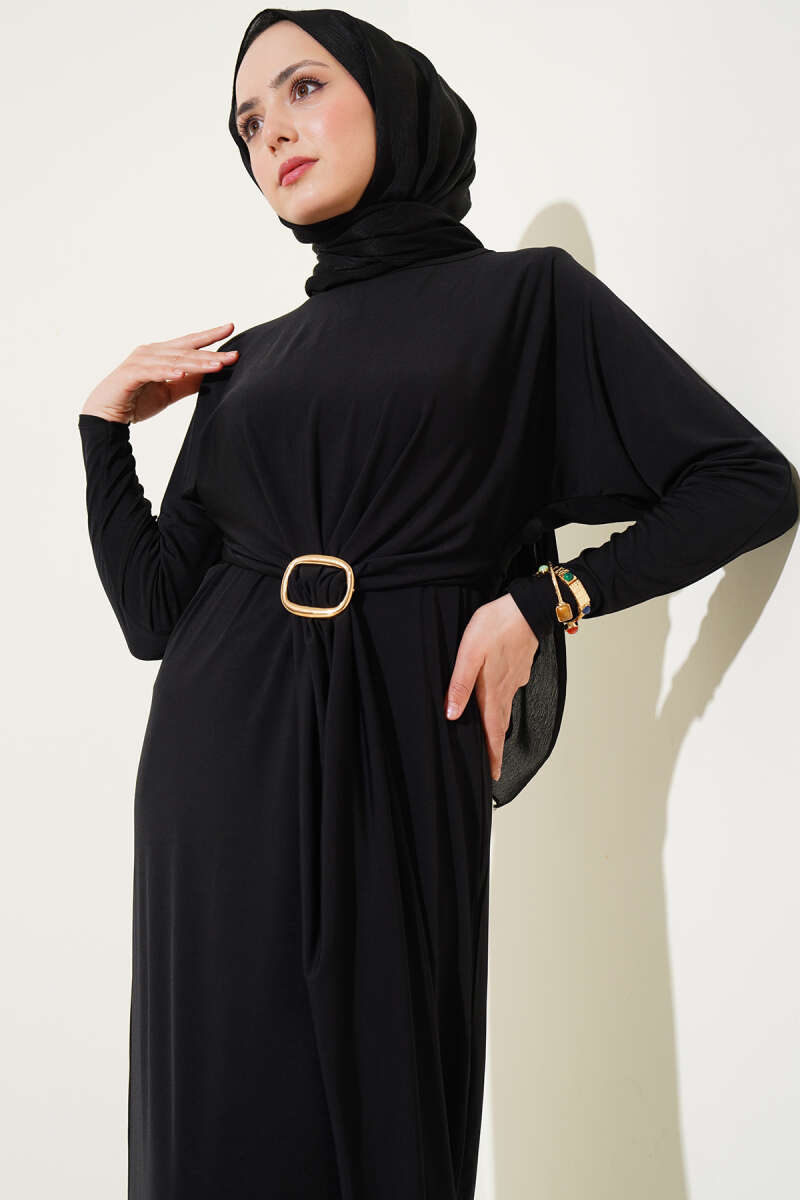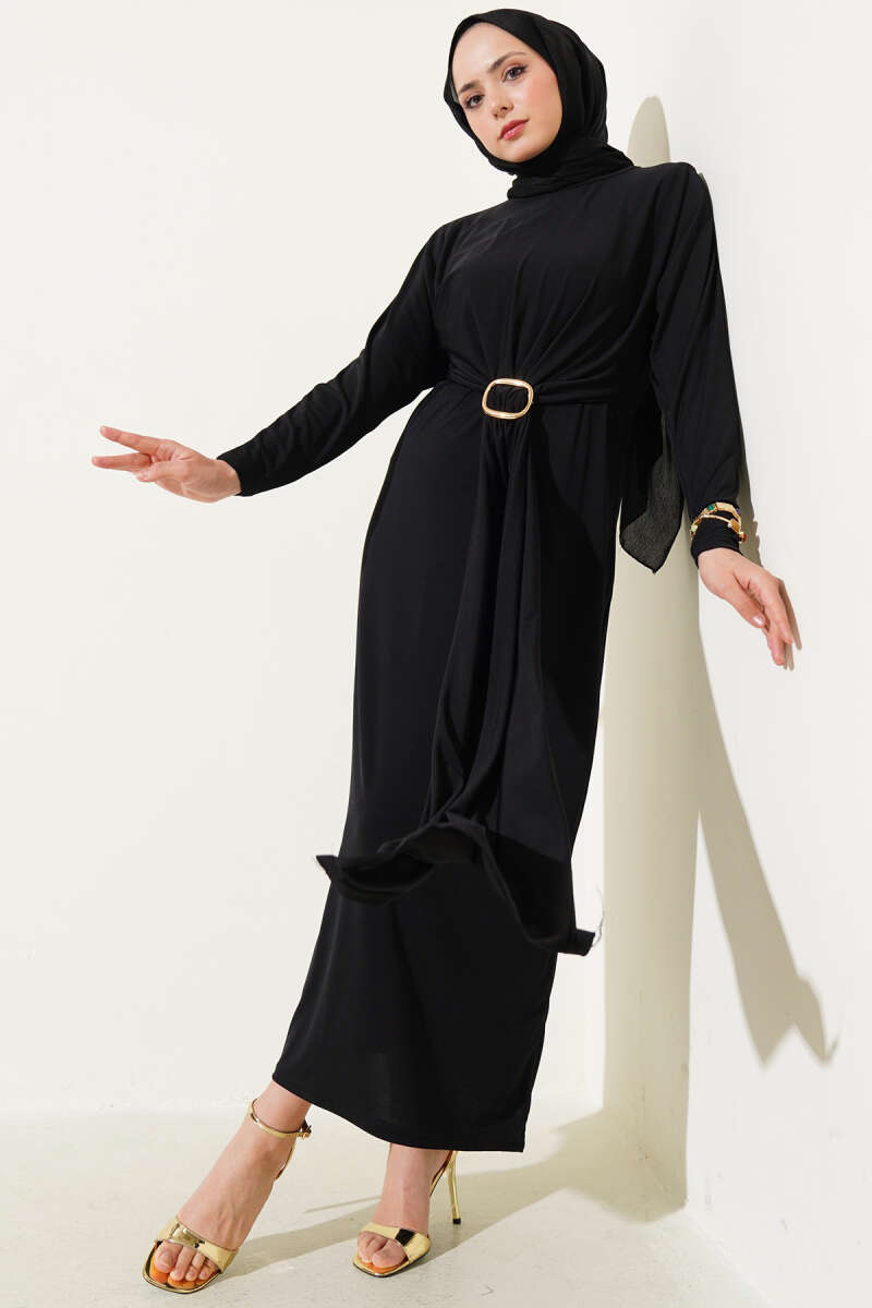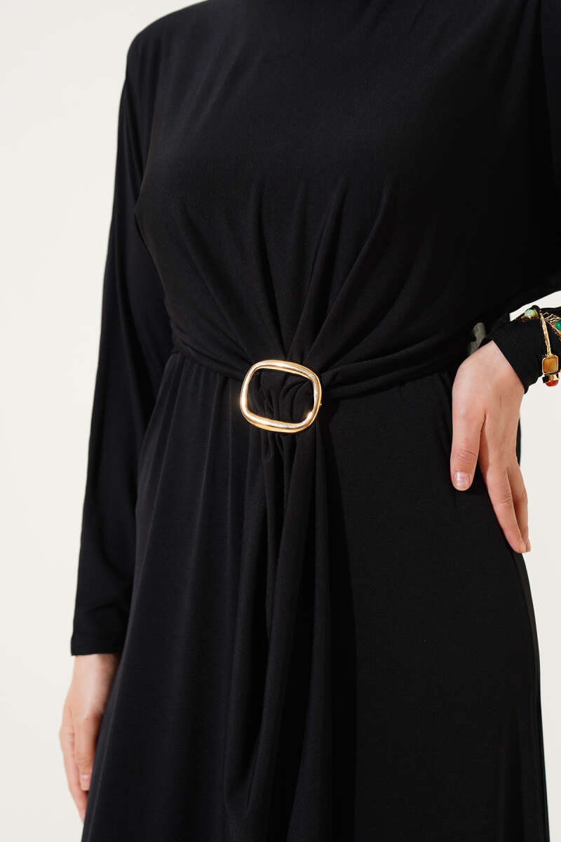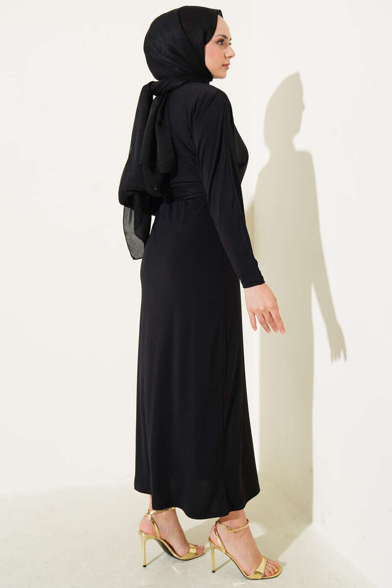 Omuz Pelerinli Taş Detaylı Abiye Elbise Siyah