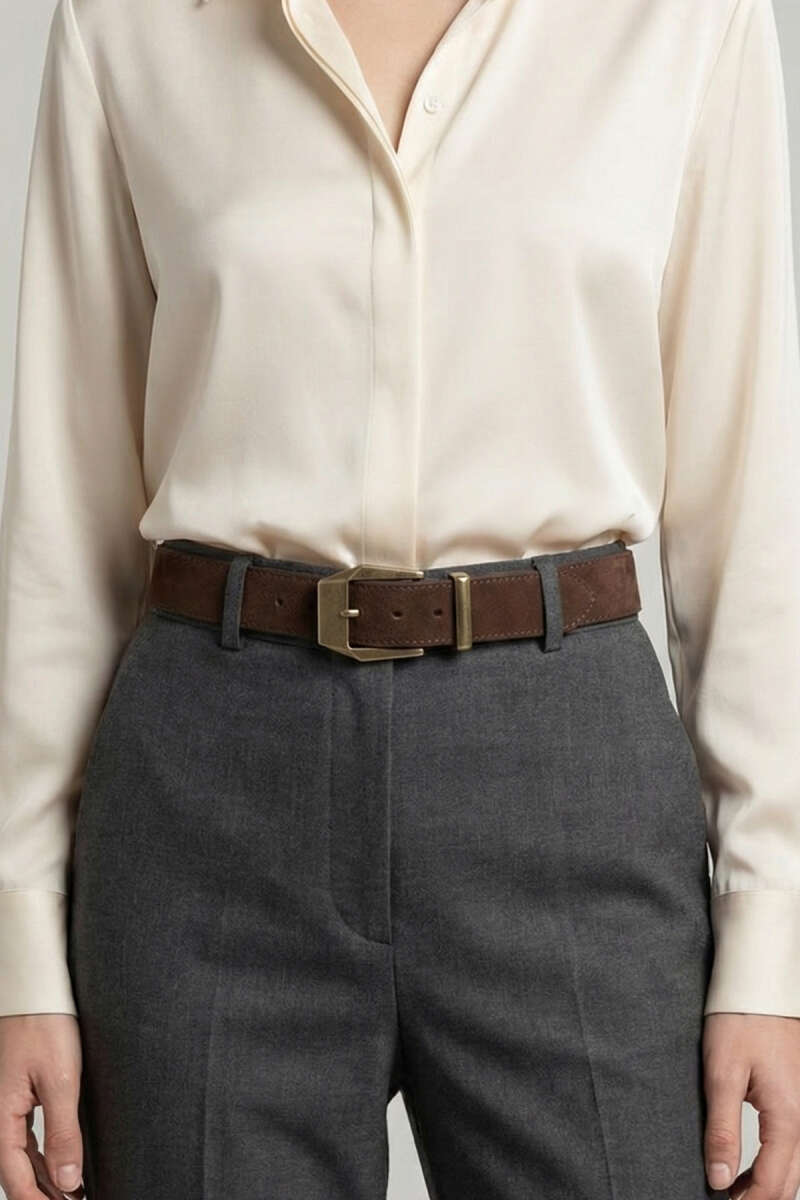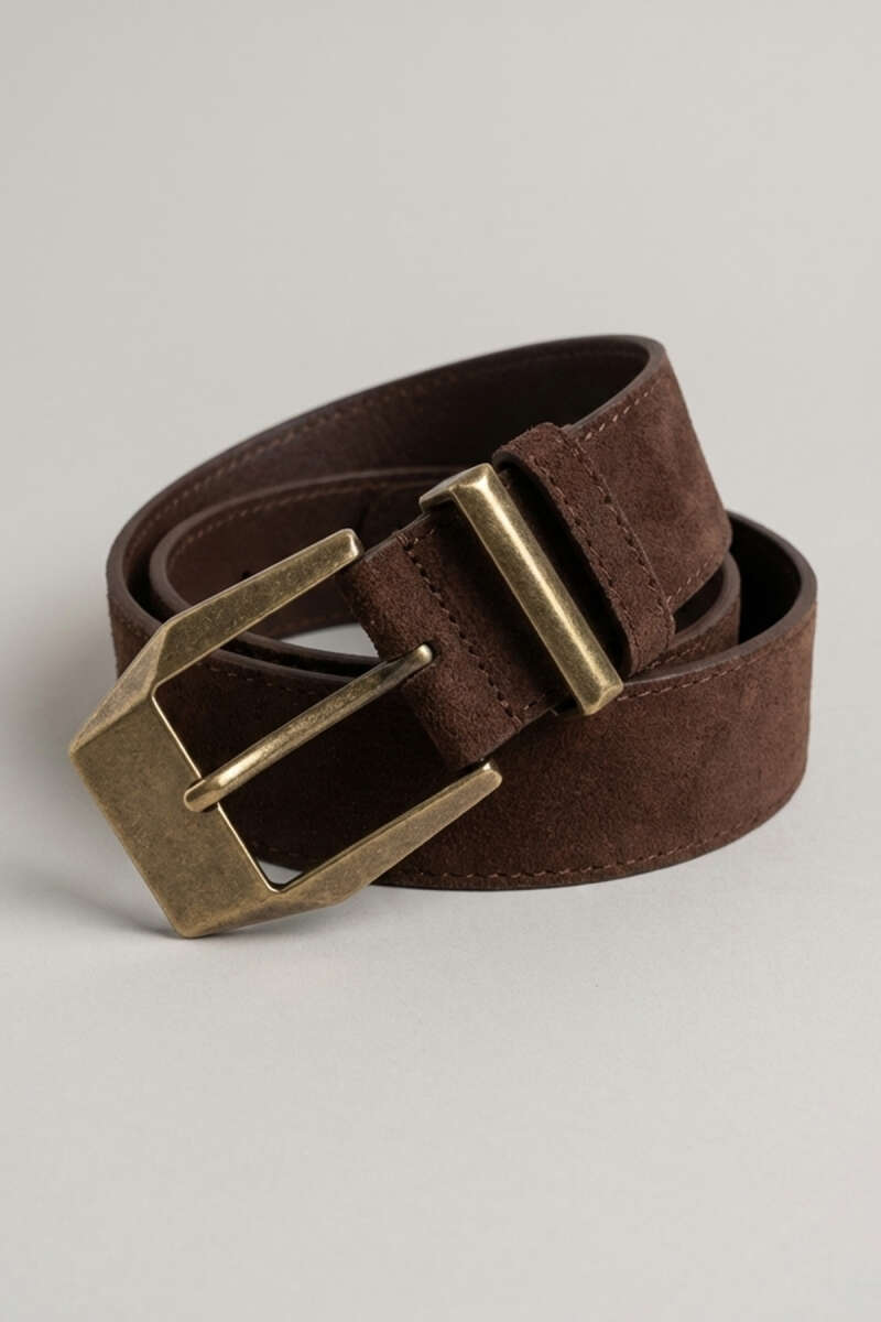 Klasik Tokalı Kemer Kahve Süet