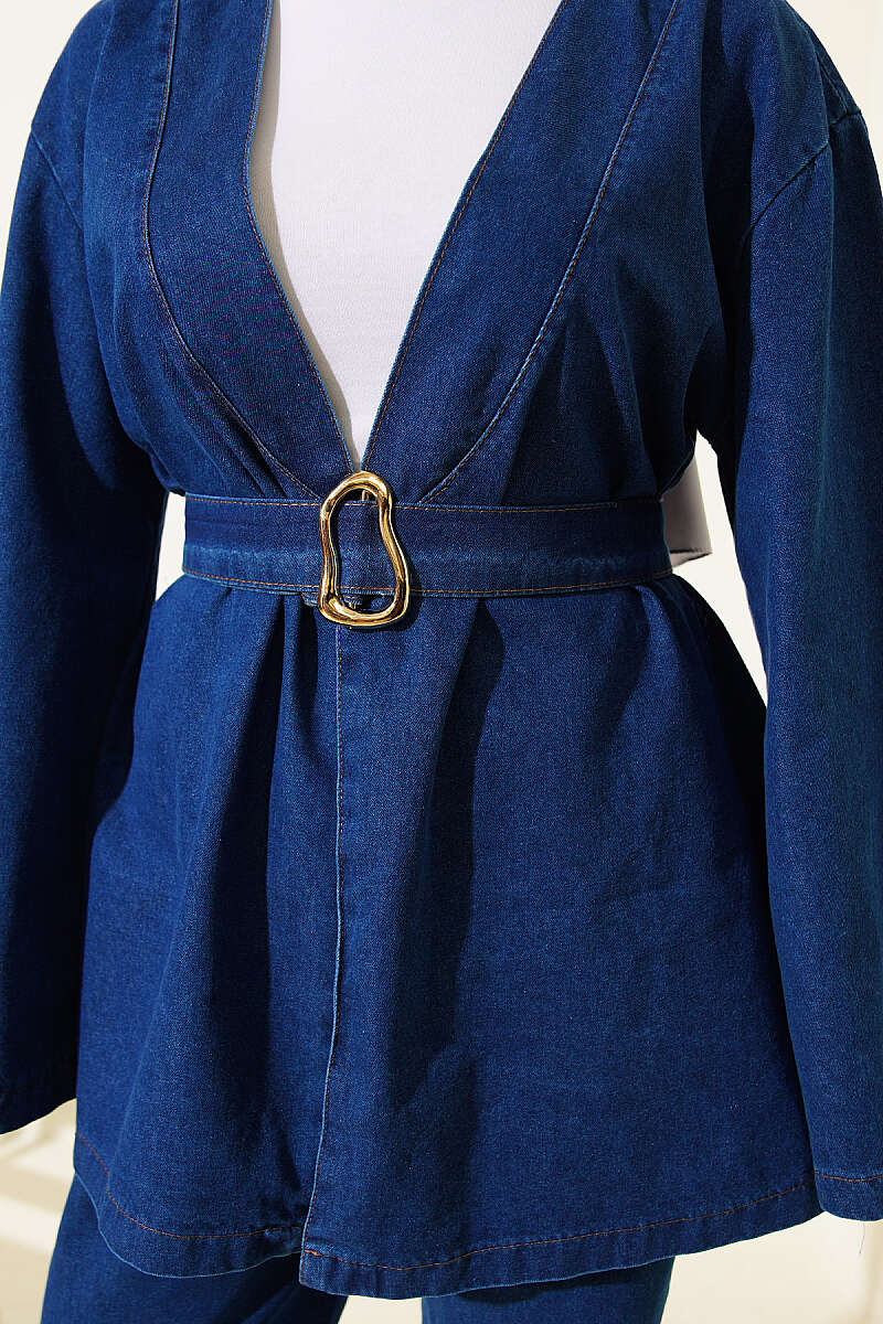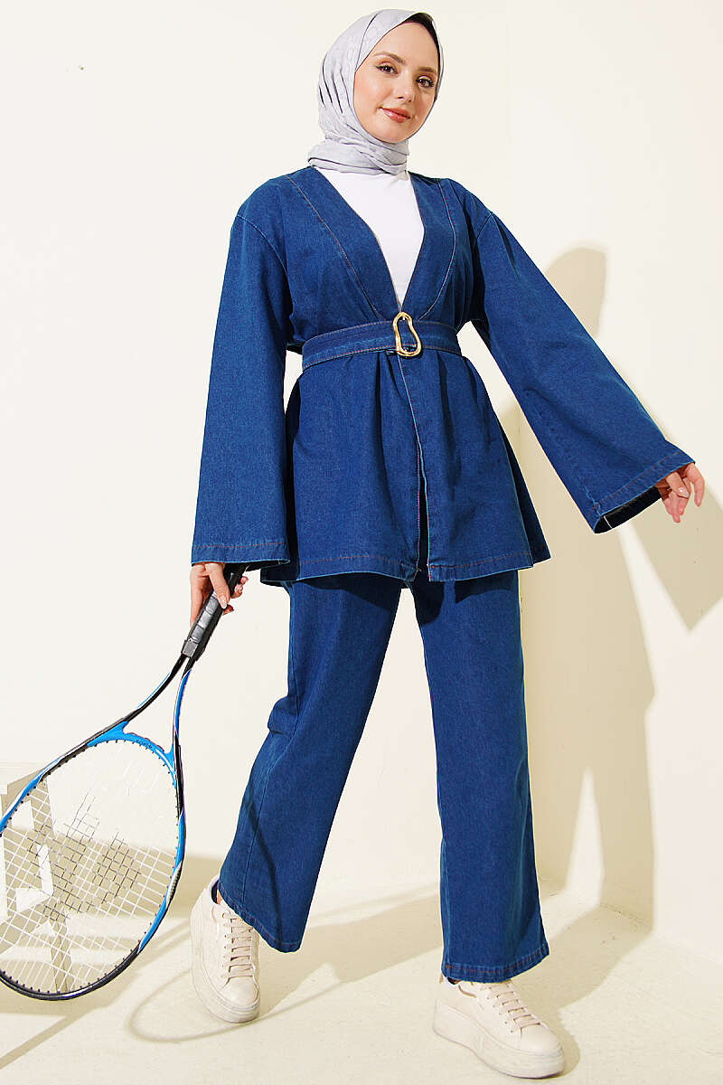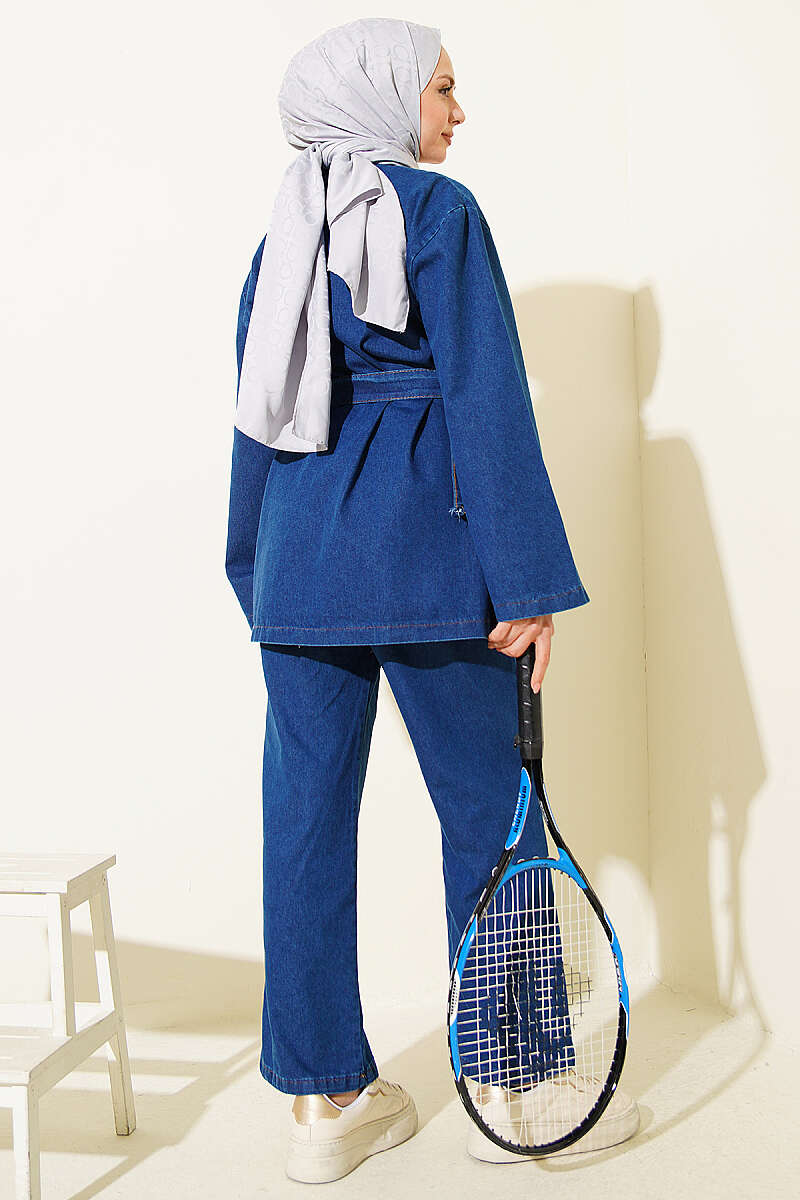 Tokalı Kemerli Kot Takım Lacivert