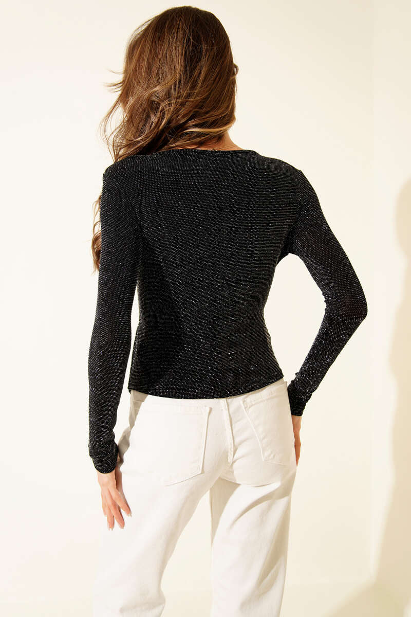Dik Yaka Uzun Kol Bluz Simli Bluz Siyah