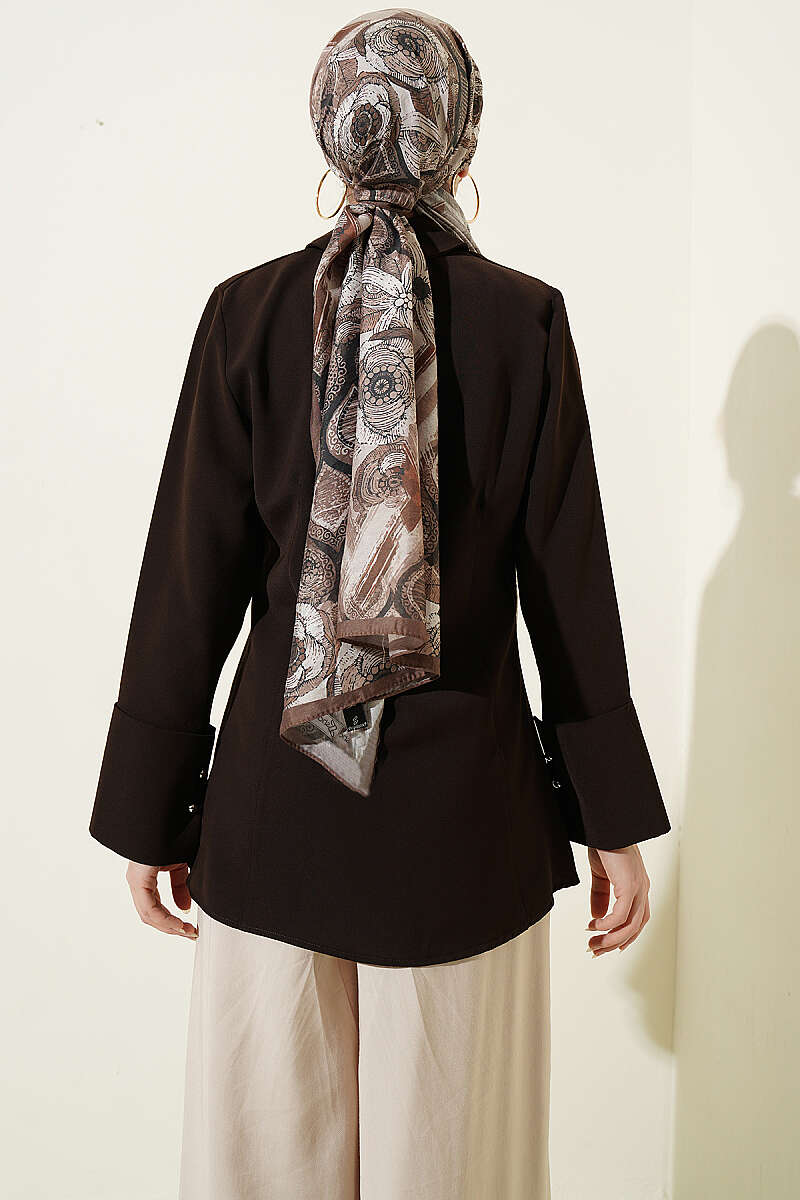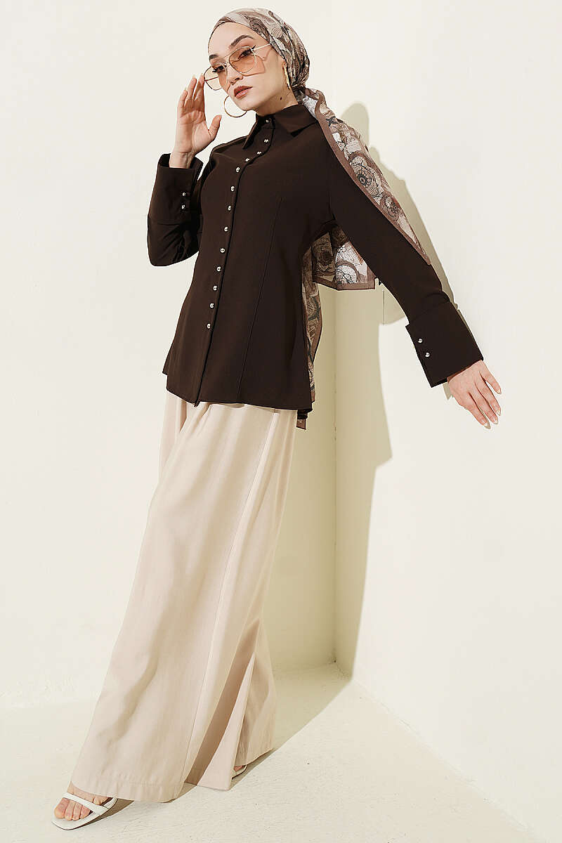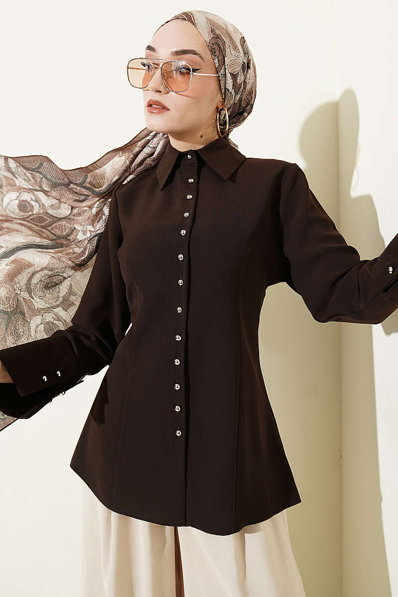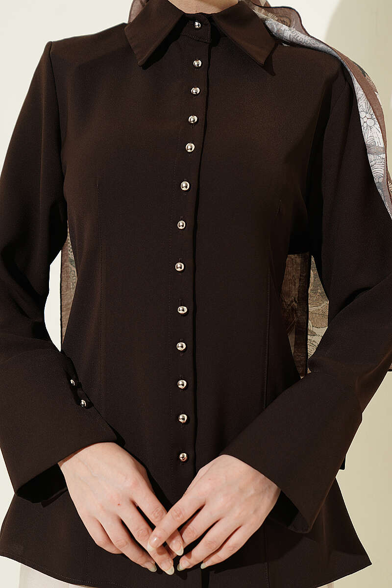 Top Düğmeli Dikiş Detaylı Gömlek Kahve