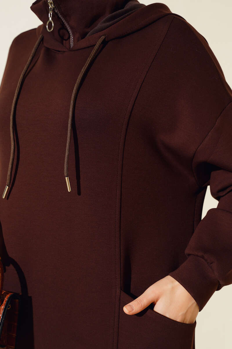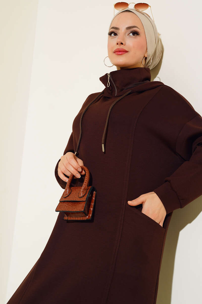 Torba Cep Kapüşonlu Elbise Kahve