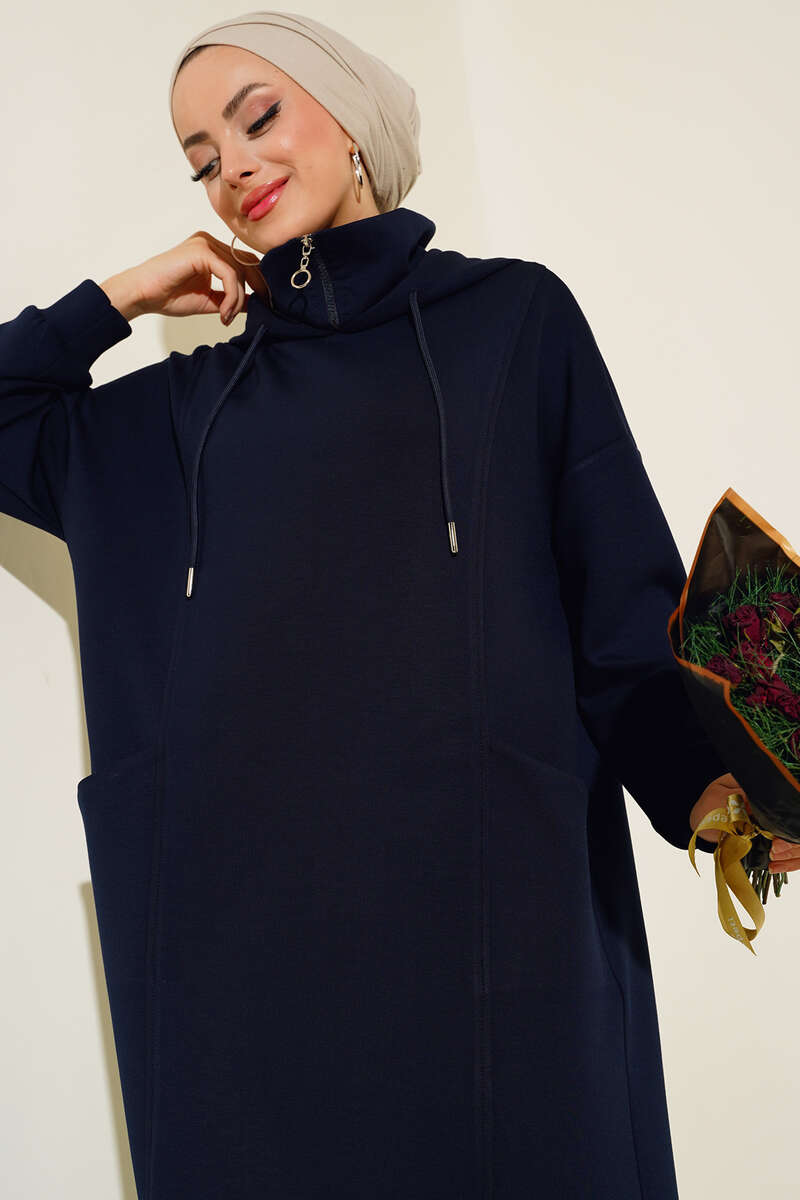 Yeni sezon elbise modelimiz sizlerle beraber. Yakası yarın fermuarlı elbisemiz kapüşonlu modeldir. İki adet torba cebi bulunan elbsemizin renk seçenekleri mevcuttur.
