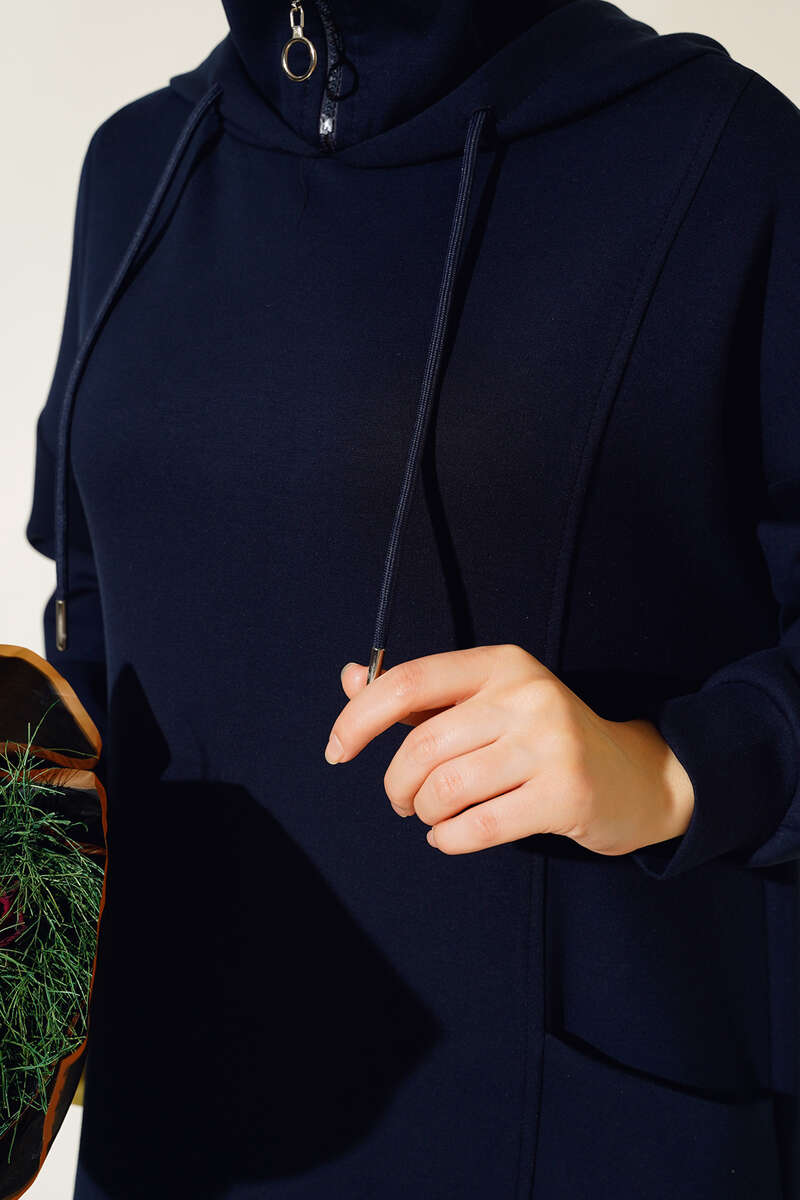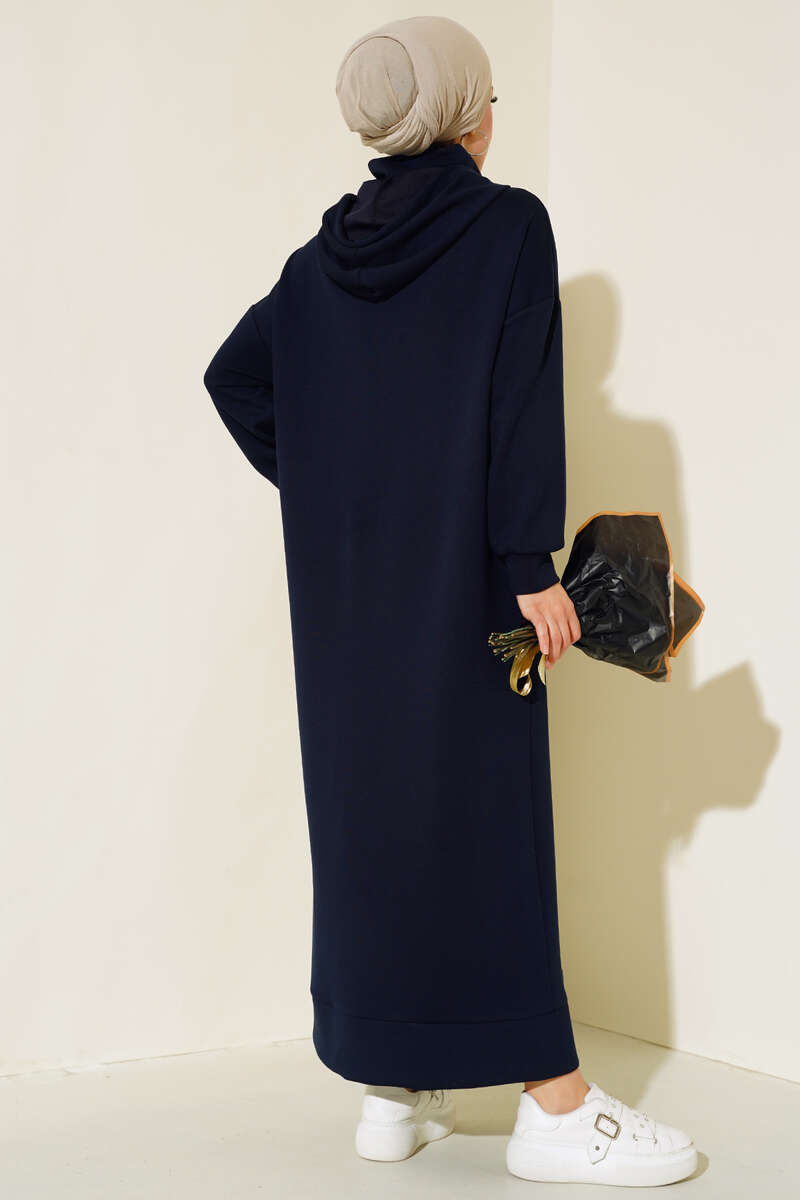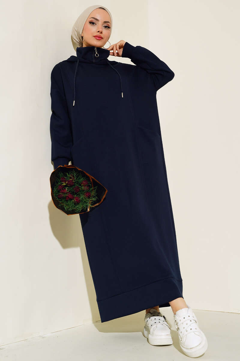 Torba Cep Kapüşonlu Elbise Lacivert