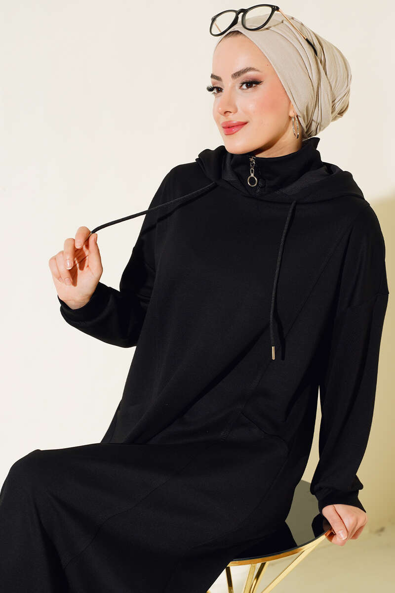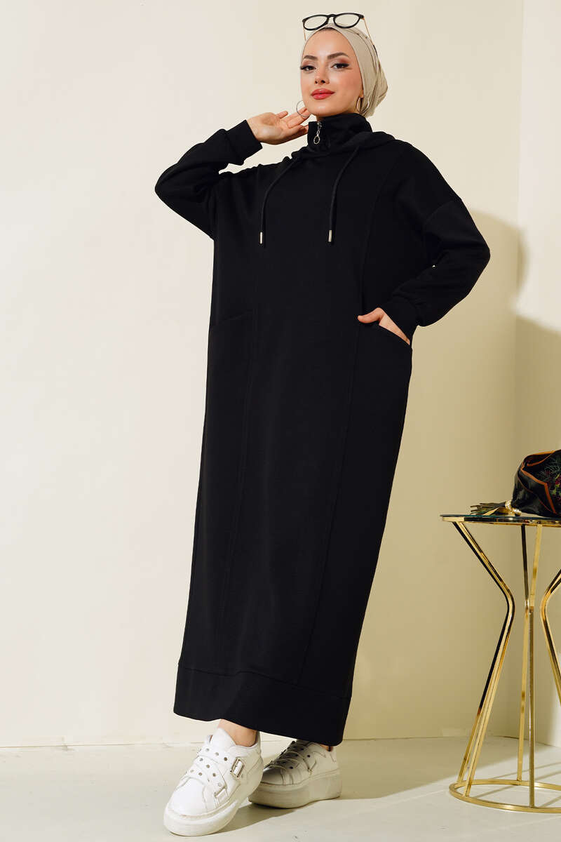 Yeni sezon elbise modelimiz sizlerle beraber. Yakası yarın fermuarlı elbisemiz kapüşonlu modeldir. İki adet torba cebi bulunan elbsemizin renk seçenekleri mevcuttur.