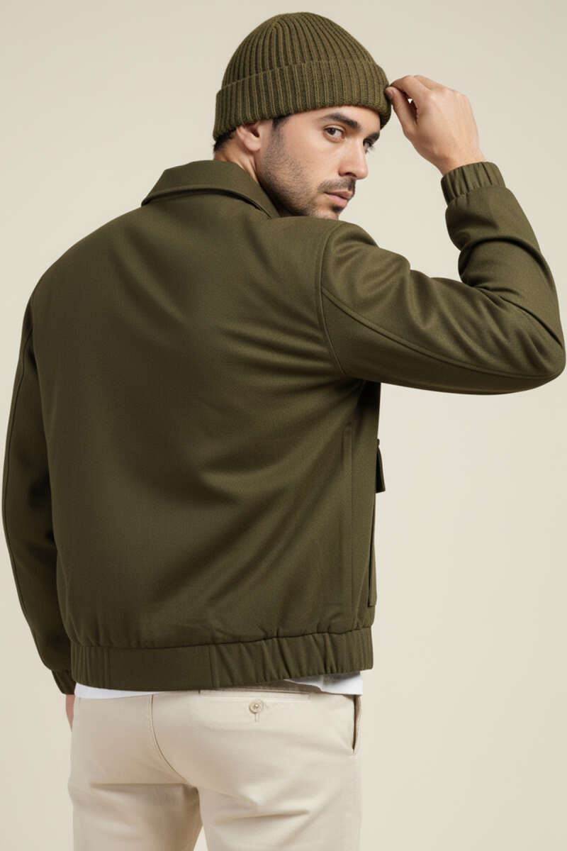 Geniş Cepli Fermuarlı Erkek Ceket Taş