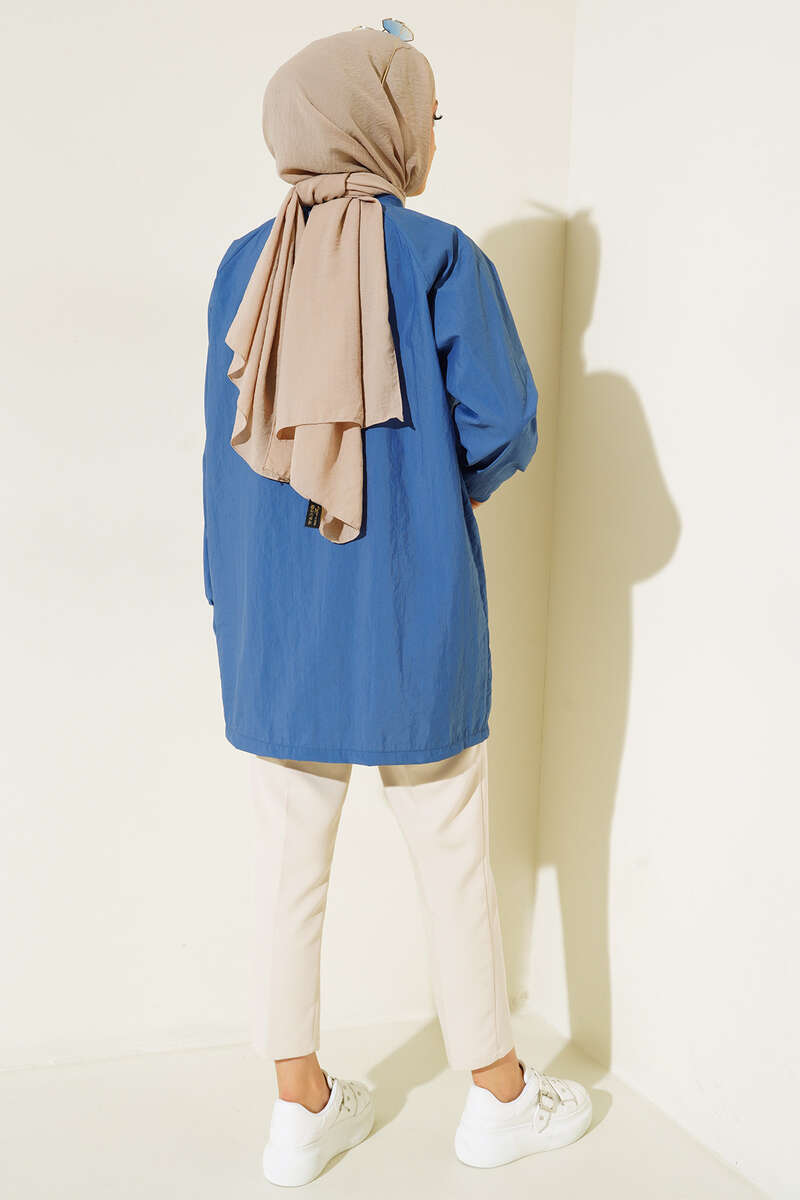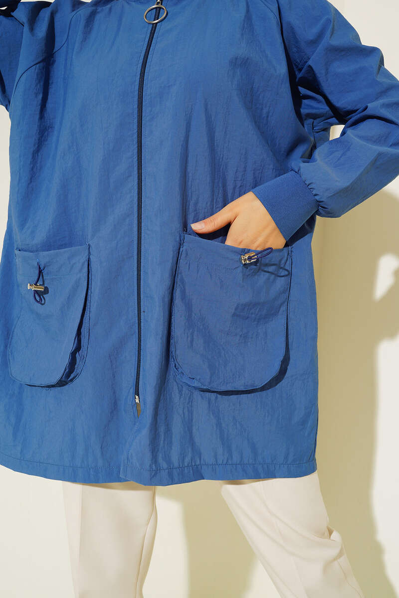 Yeni sezon yağmurluğumuz önünde bulunan iki adet torba cebiyle detaylanmıştır. Cepleri lastikli büzgülenebilir. Boydan fermuarlı olan yağmurluğumuzun yakası ve bilek manşetrleri ribanalıdır.