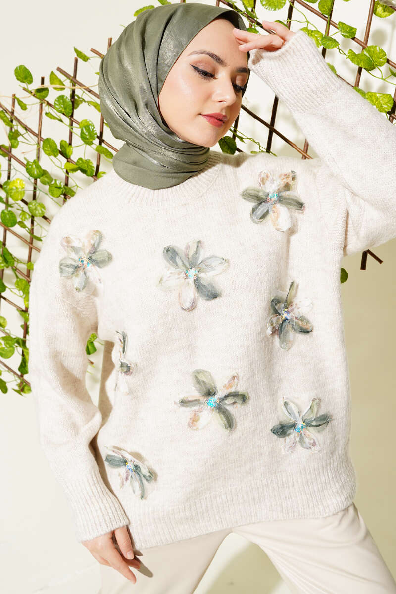 Gömlek Yaka Çizgili Triko Tunik Ekru