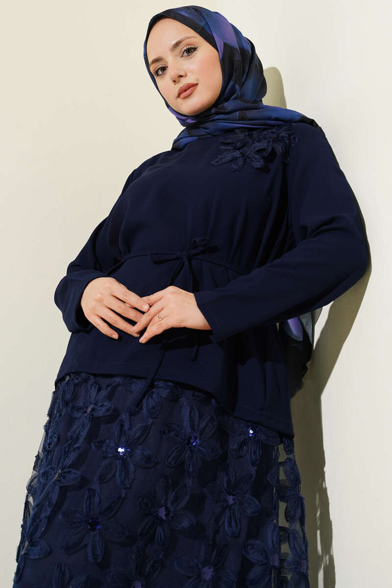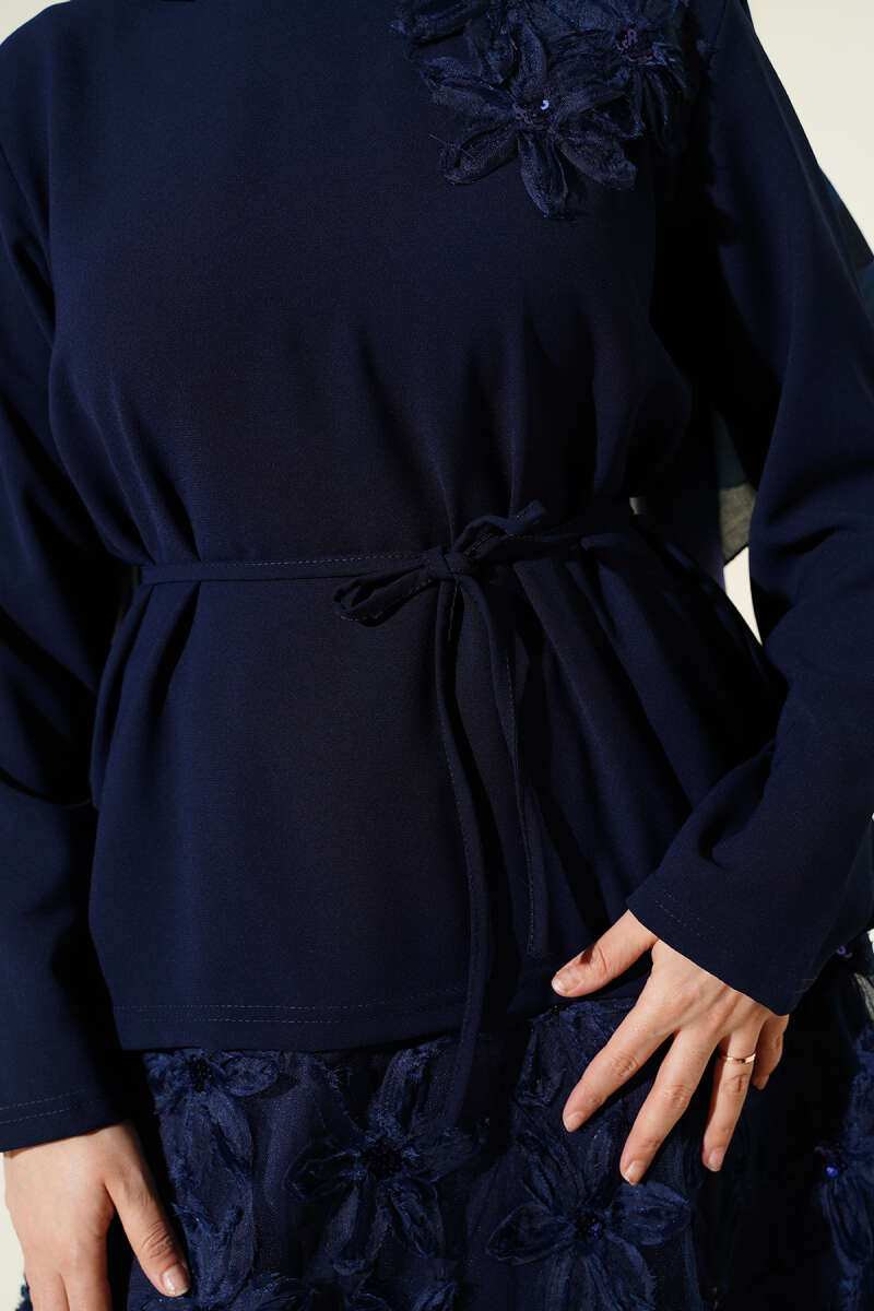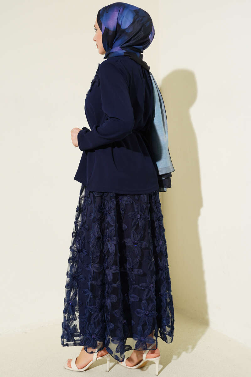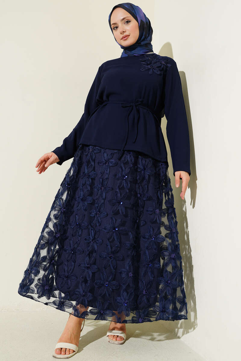 Tül Çiçekli Etekli İkili Takım Lacivert