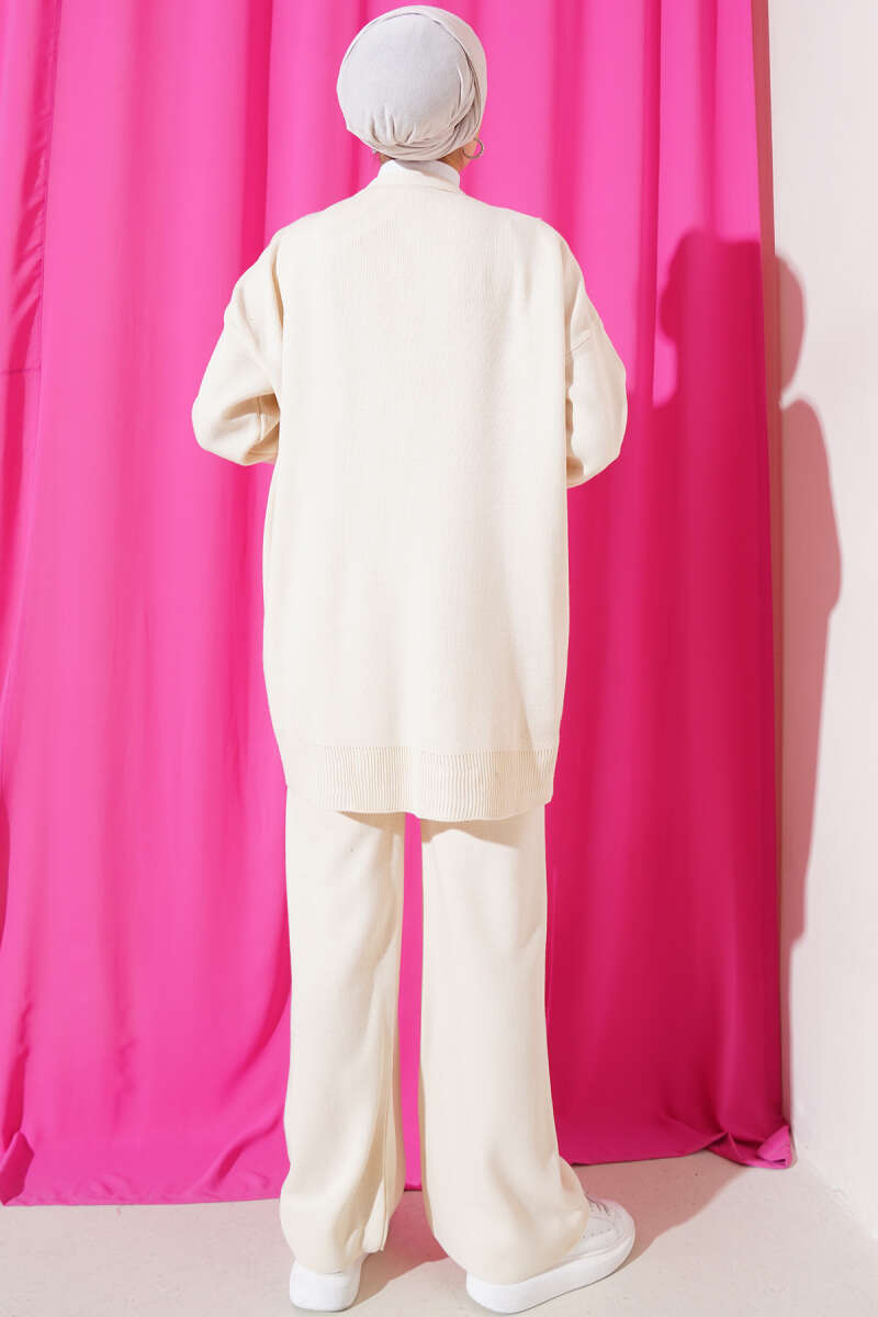 Dikiş Detaylı Basic Triko İkili Takım Vizon