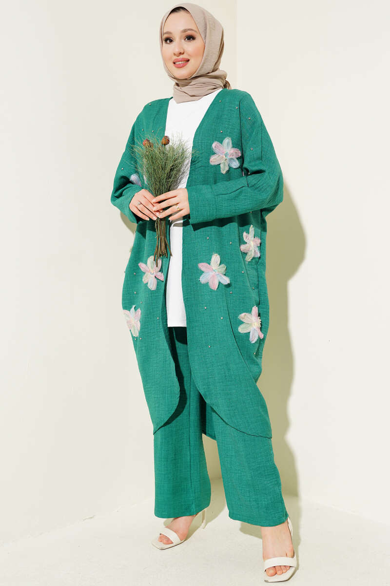 Tül Çiçekli Kimonolu Üçlü Takım Benetton