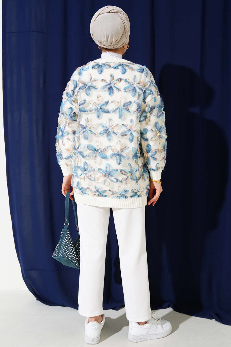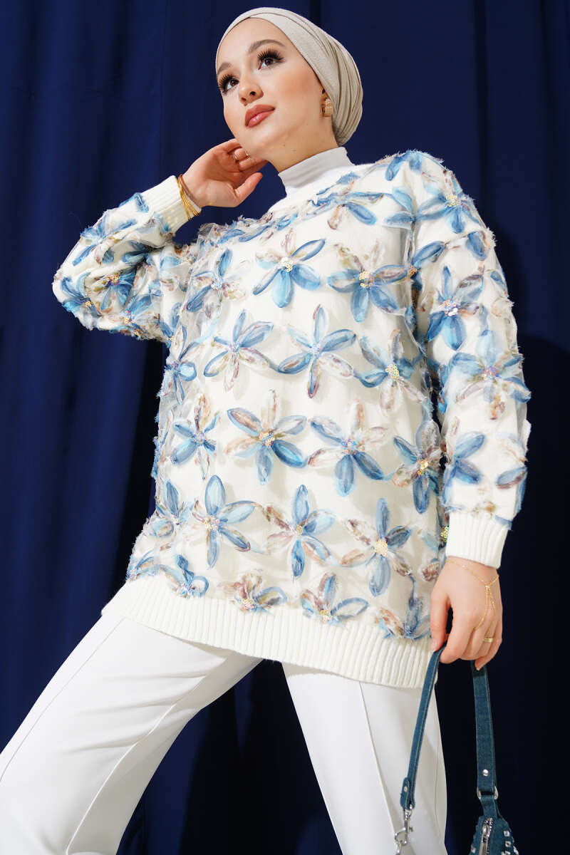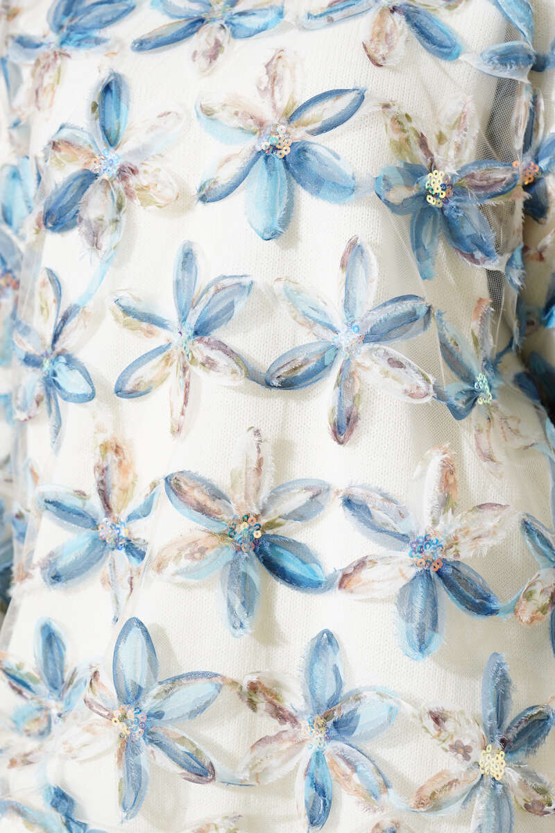 Tül Çiçekli Triko Tunik Bej