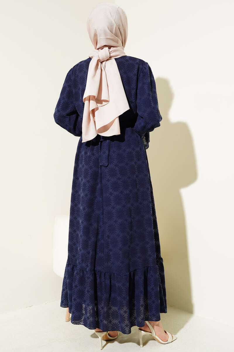 Kol Ucu Kürklü Fitilli Kaşe Elbise Lacivert