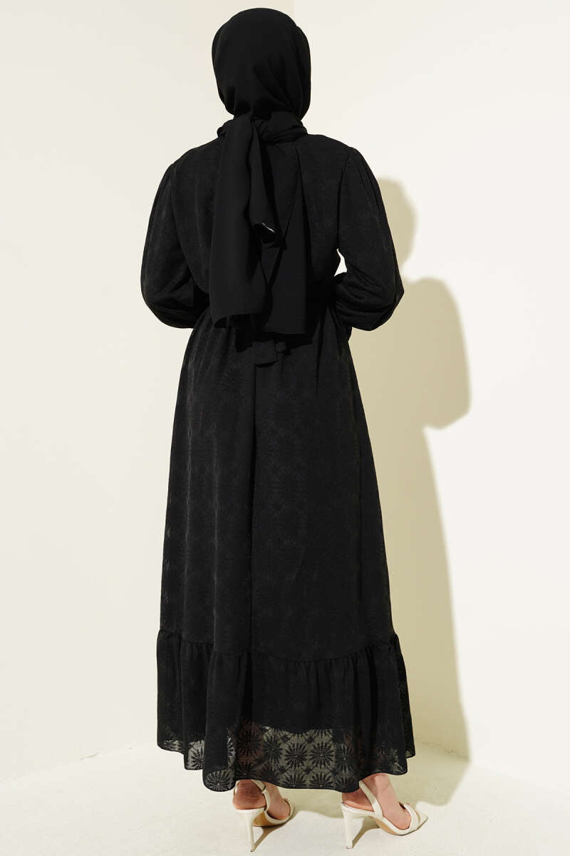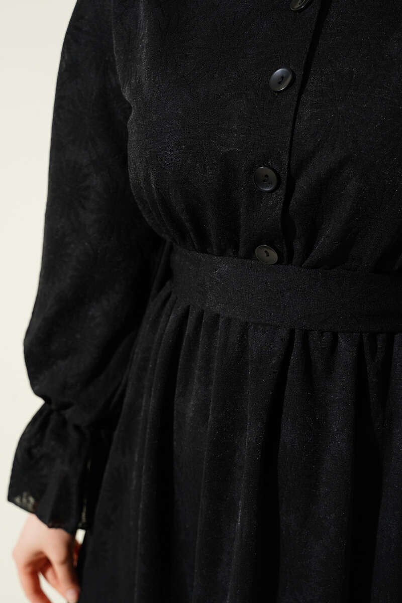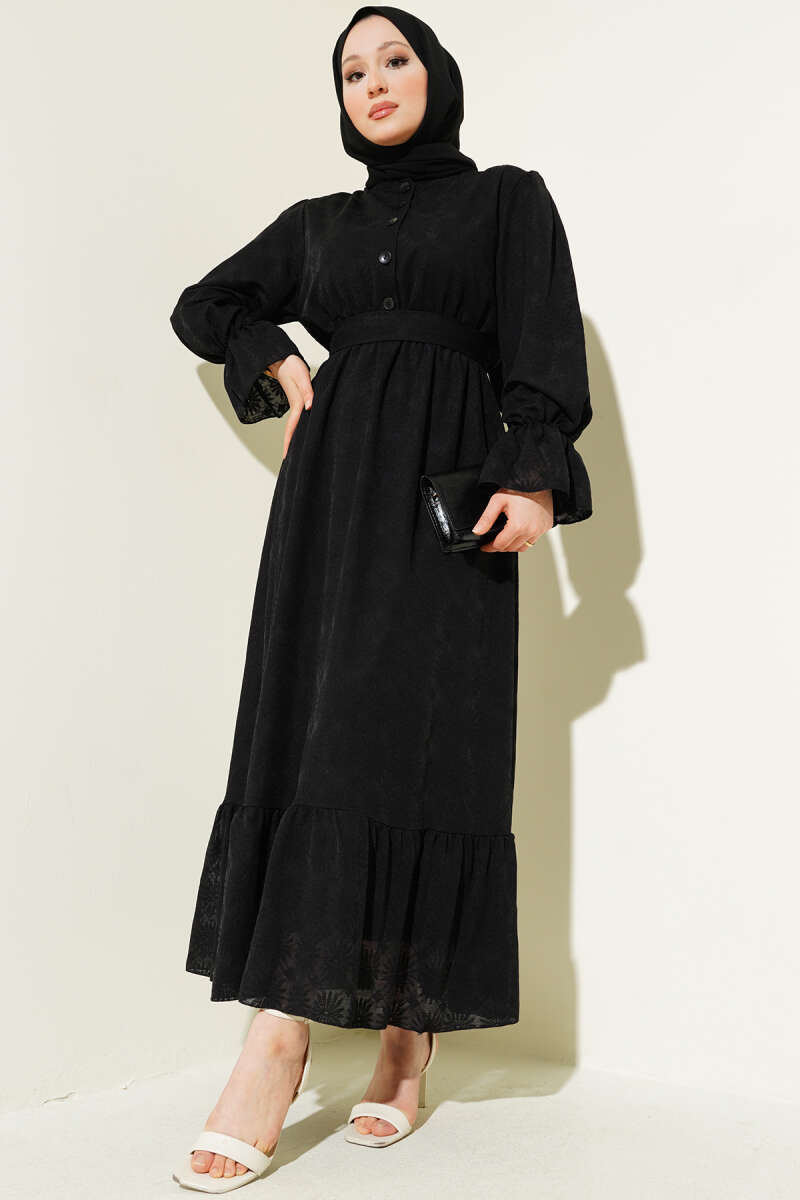 Yarım Taş Düğmeli Volanlı Elbise Taş